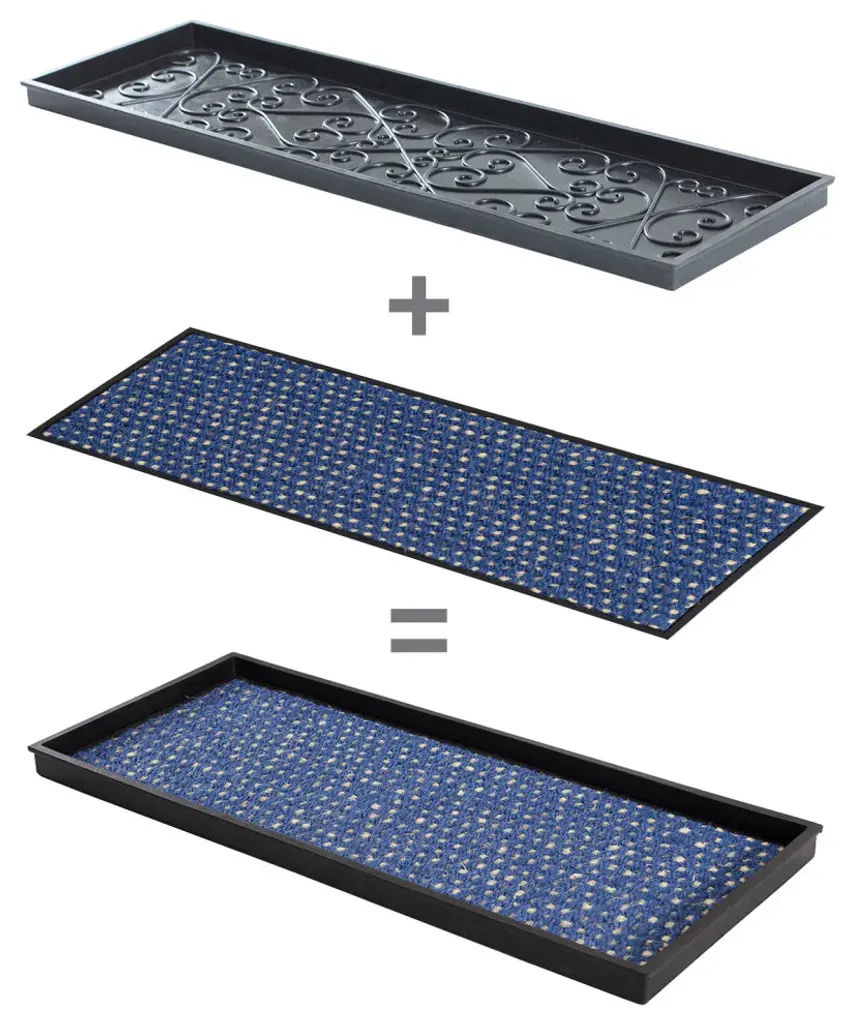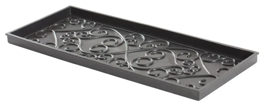 Boot trays don''t have to be boring. The foundation of this collection begins with a premium, heavy-duty, waterproof tray made of natural and recycled rubber featuring a classic scroll design. To that we have added an easily removable insert that is available in a variety of stylish patterns and woven from natural, durable coir fiber. This insert adds a pretty punch to your decor and cleans up simply just remove insert, shake out debris, hose off insert, air dry and you are back in business. Genius! Now go outside, do what you do and know that your footwear has a safe and smart place to rest when you get back home.