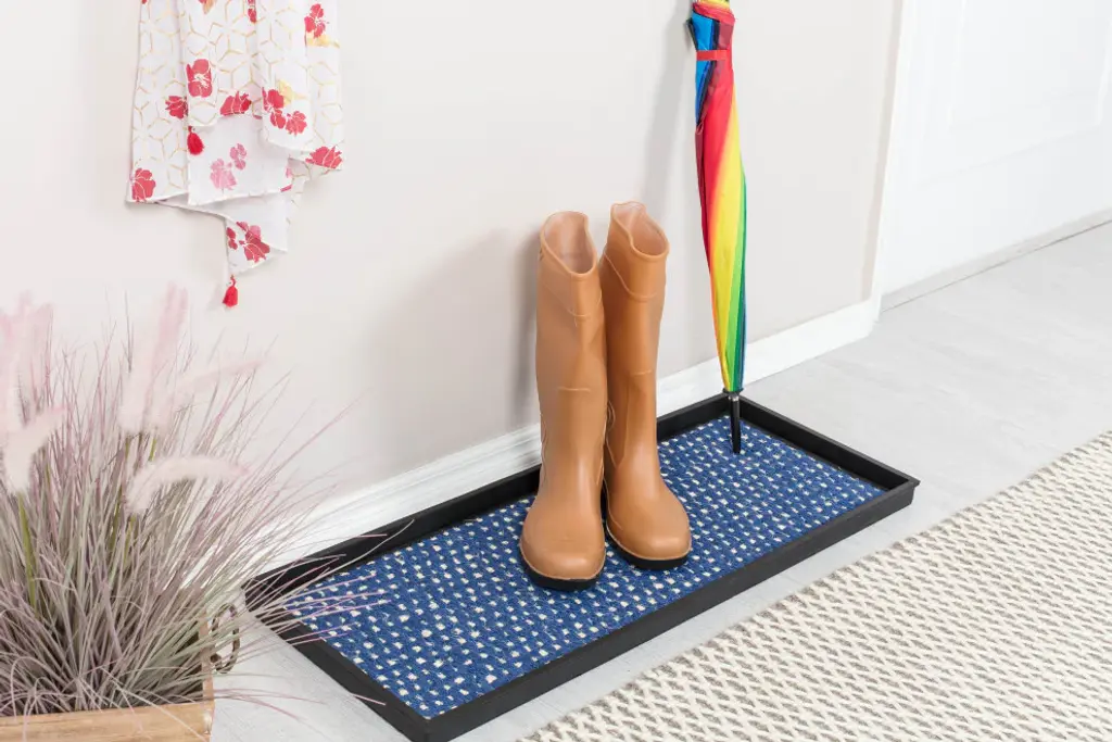 34.5"x14"x1.5" Natural/recycled Rubber Boot Tray Blue/ivory Coir Insert