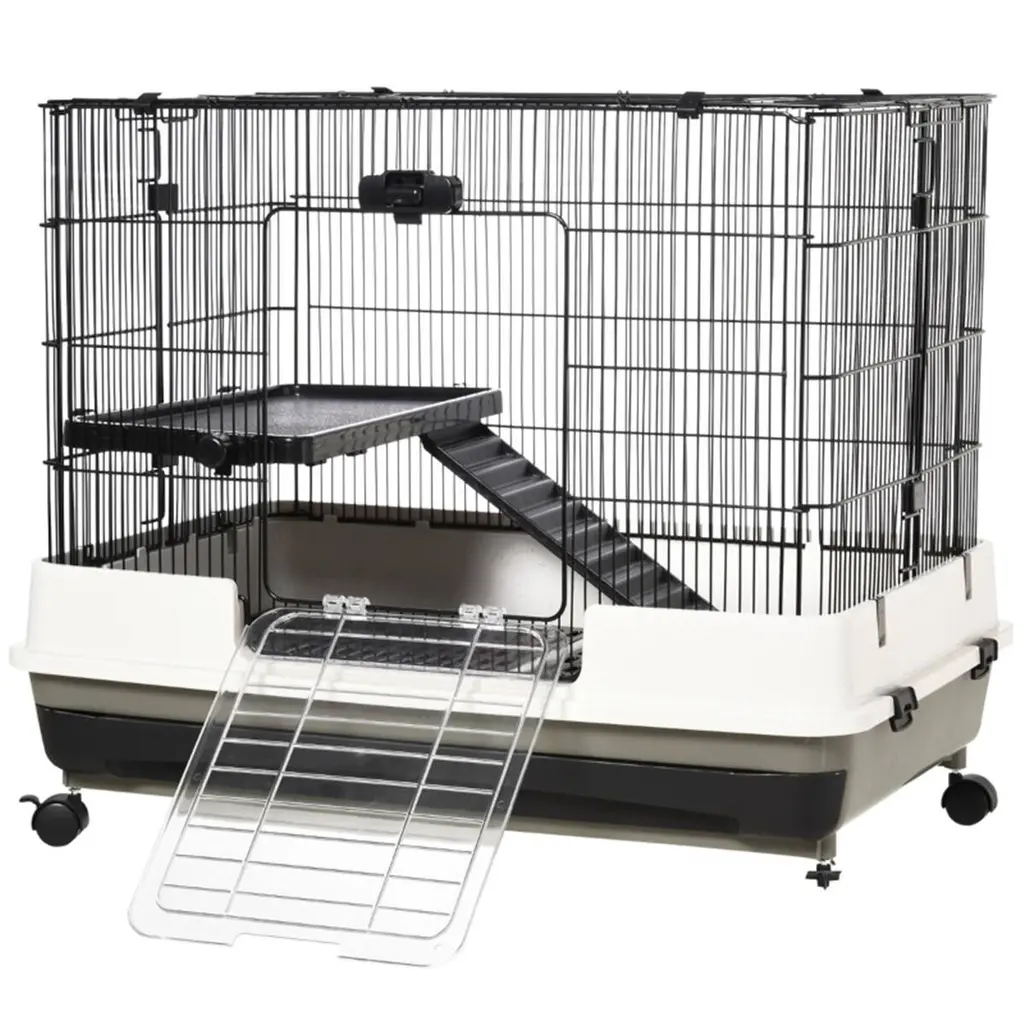 4-Level Small Animal Cage Hutch With Wheels, Removable Tray, Platform And Ramp For Bunny, Chinchillas, Ferret, Black - Black