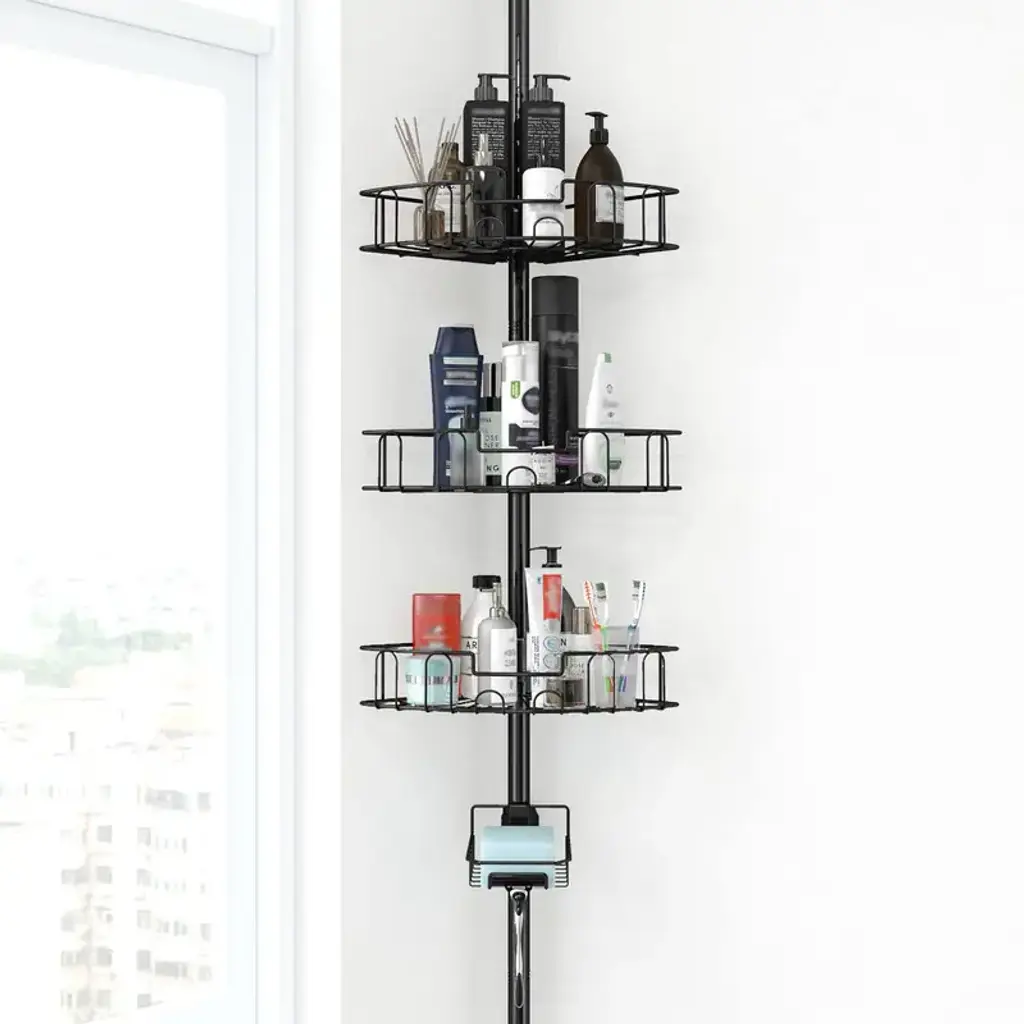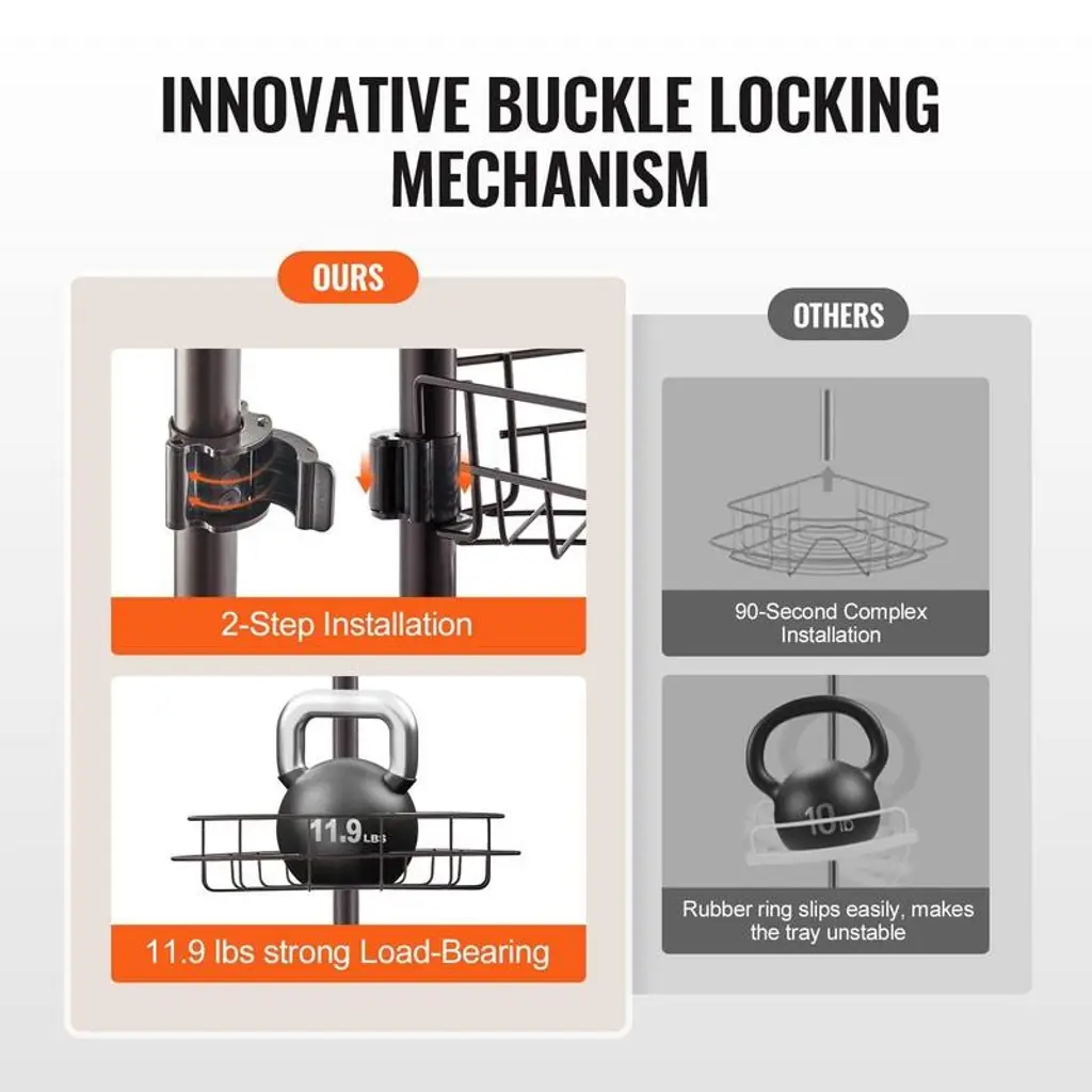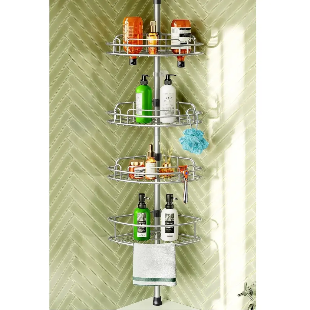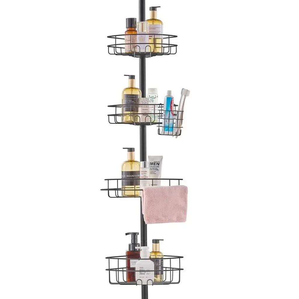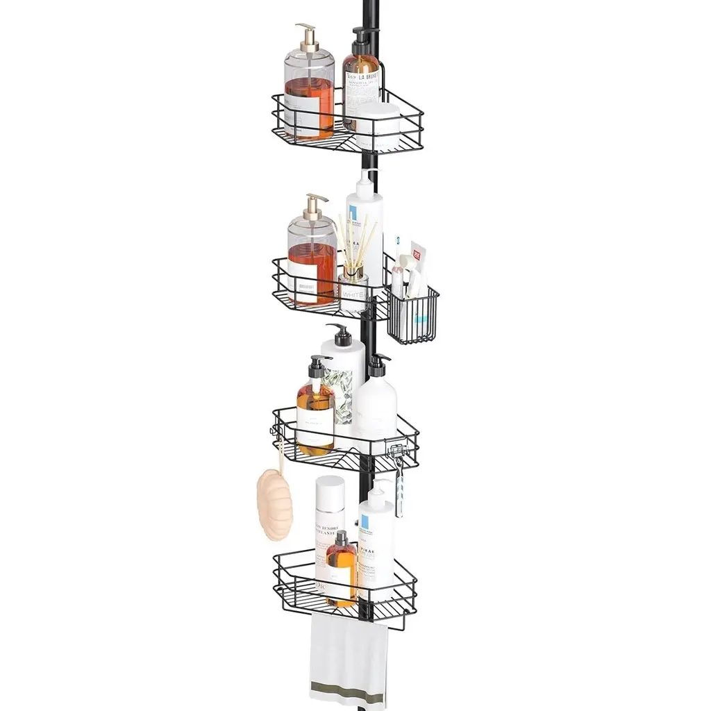 4-Tier Shower Corner Shelf Tension Bar, Multifunctional, With Sturdy Load-Bearing Tray, Rust-Resistant And Easy To Install - Bronze