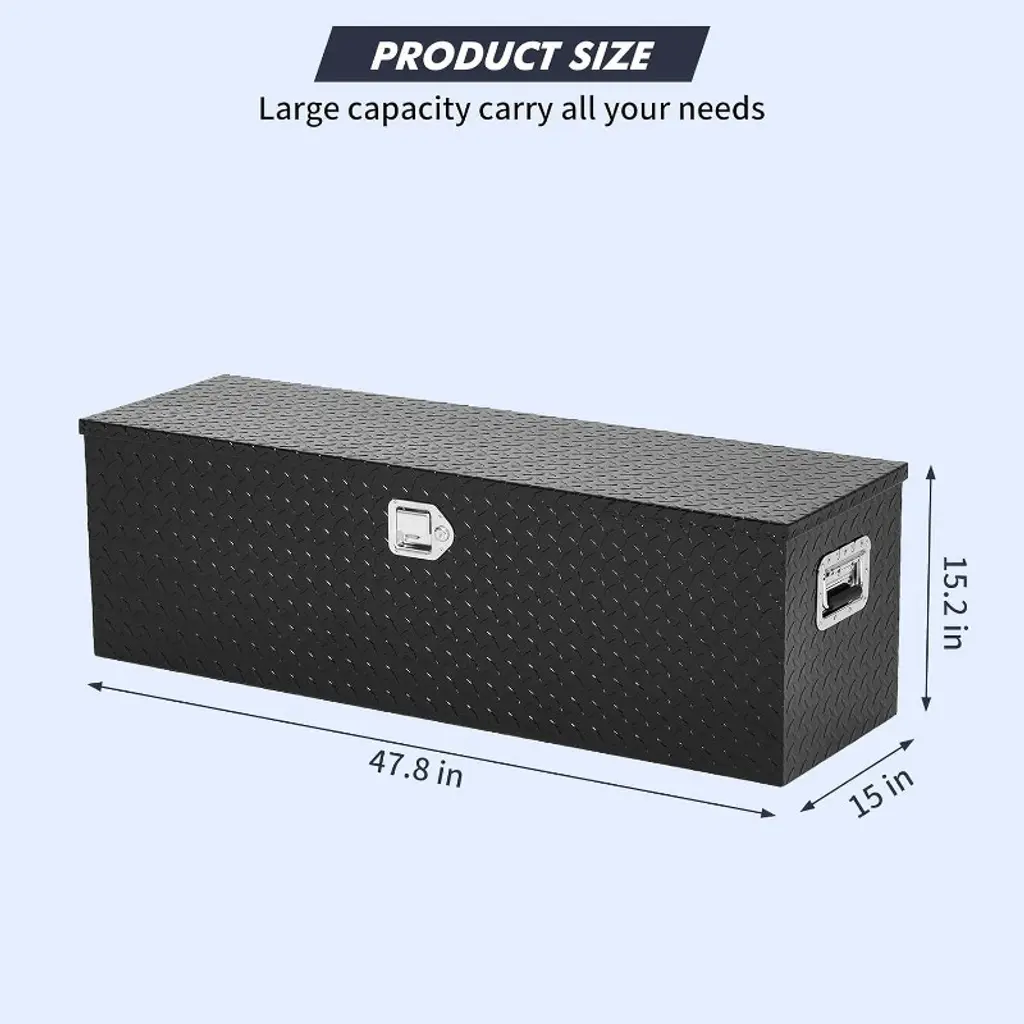 48 Inch Heavy Duty Aluminum Truck Bed Tool Box, Diamond Plate Storage With Sliding Tray, Lockable Tool Chest For Pickups, Rvs & Trailers