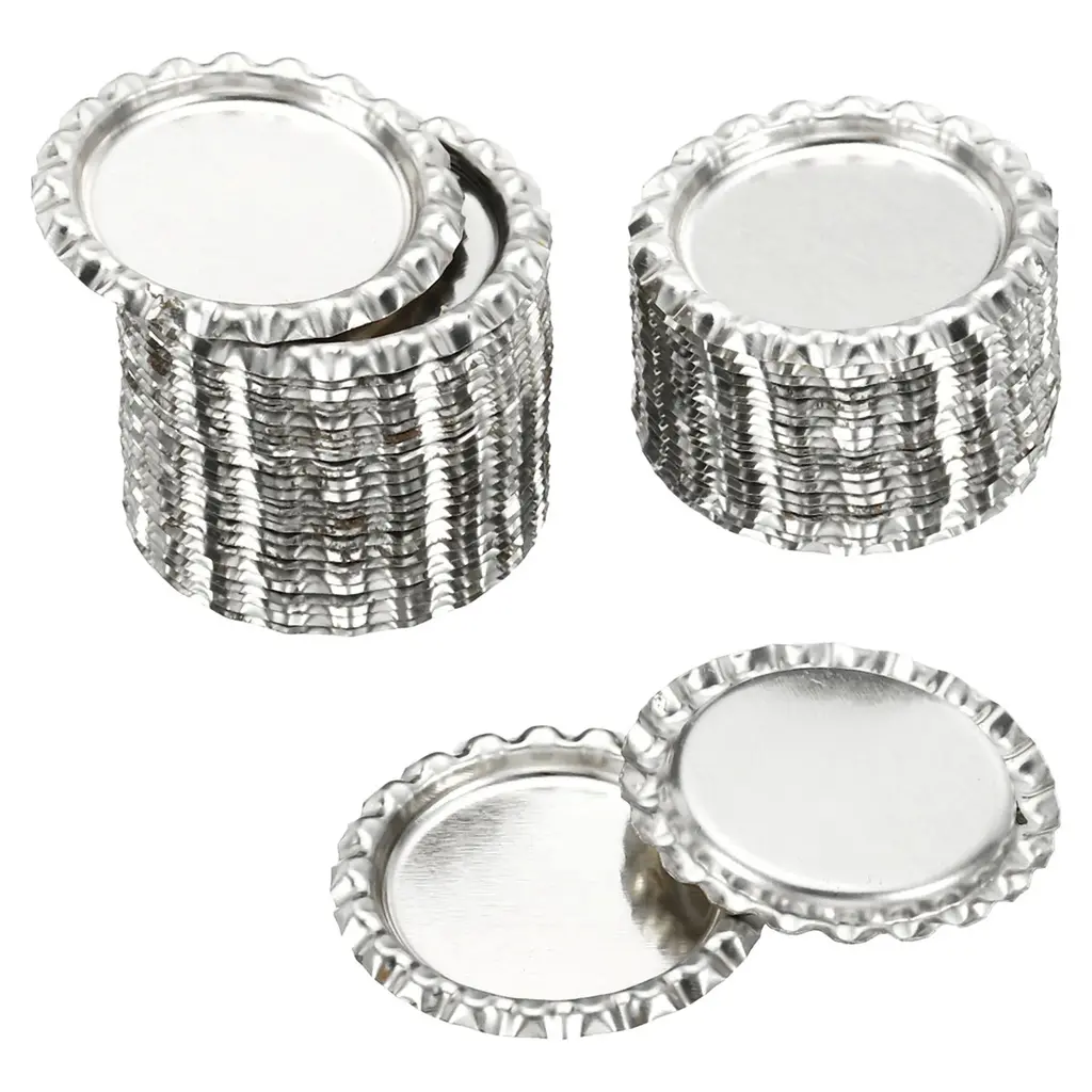 Flat bottle caps are applied to crafts, scrapbooking, hair accessories, pendants, earrings, and many other DIY projects. Great for art class projects, holiday decorations, and birthday party fun.SpecificationMaterial: MetalSurface Treatment: Baking VarnishOverall Dimensions: 33 x 3.3 mm / 0.13 x 1.3 inch (Dia*H)Bottom Inner Diameter: 25.4 mm / 1 inchPacking List: 50pcs x Double-Sided Colorful Craft Bottle CapsAdvantages1. Bottle caps are made of metal material, the bottle caps are pressed flat, painted on both sides, and have smooth edges, perfect for DIY projects.2. Concave and convex round Flat Bottle Caps, positioning the image on the bottle cap can create a 3D look.InstructionFlattened bottle caps can be used with clear resin stickers to embed photos or other small objects as decorations such as pendants.NOTE: These bottle crown caps are for craft use only, have no rubber lining inside, and are not intended to be used as bottle sealing caps.