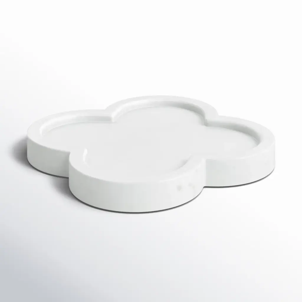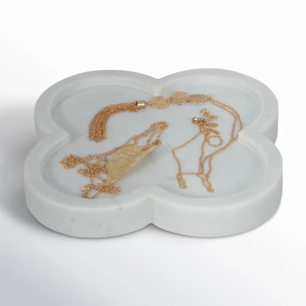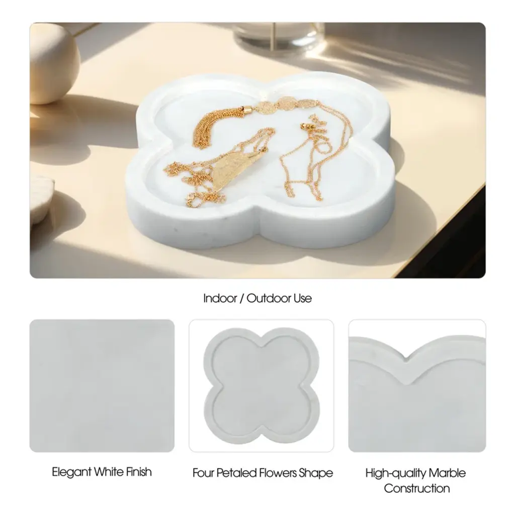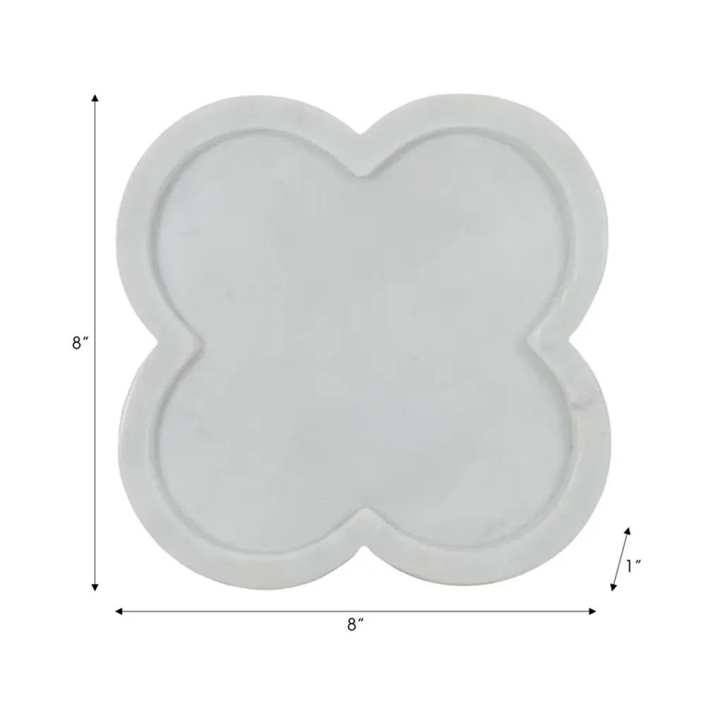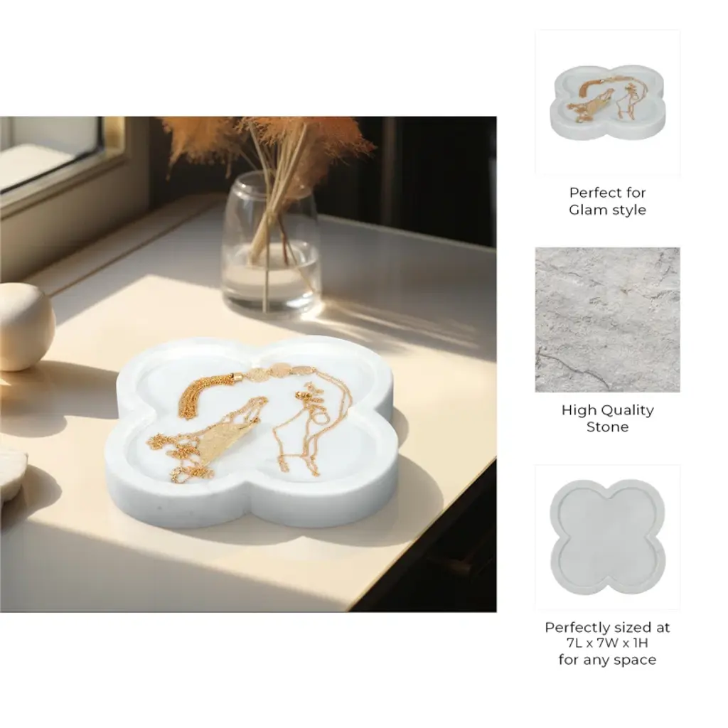 8" Dyer White Marble Trinket Tray, Flower Shape, 1"h - 8" X 8" X 1"