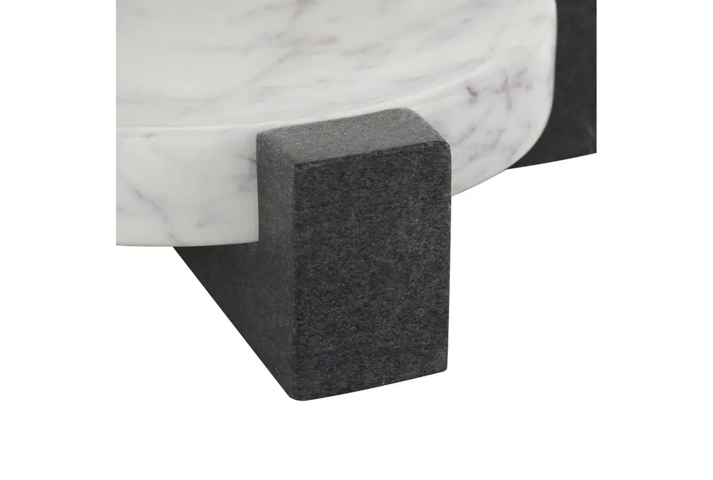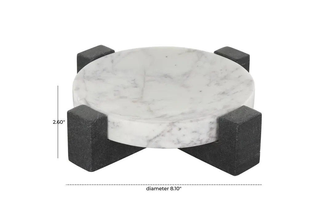 Elevate your home decor with the 8" X 8" White Marble Geometric Round Tray with Black X-Shaped Base. This tray combines sleek elegance and clean lines to offer effortless luxury with its monochromatic tones and bold, angular structures. Crafted from high-quality marble, it is both aesthetically pleasing and durable, ensuring long-lasting use.