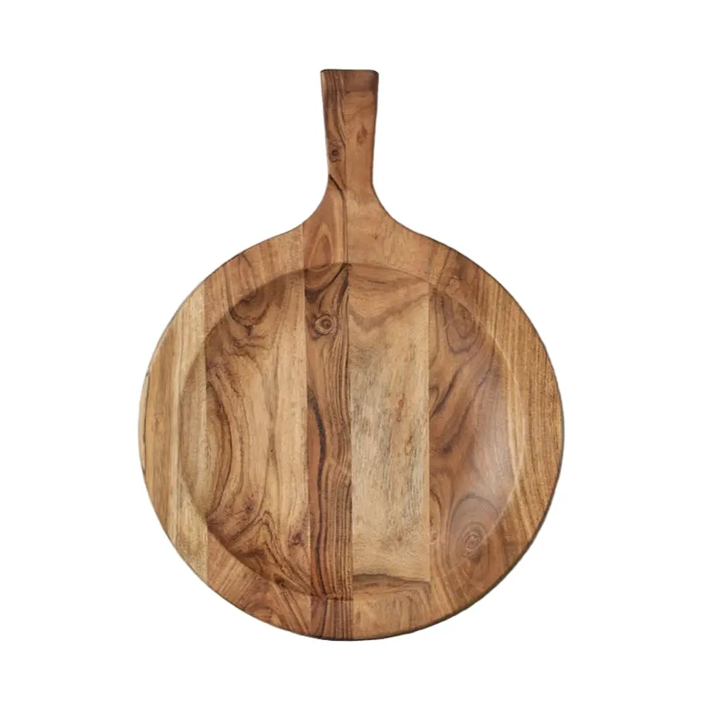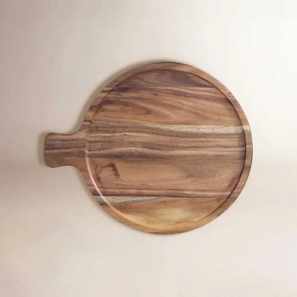 Bring this beautiful acacia serving tray to your next gathering. Your guests will love it! Thoughtfully handcrafted by artisans in the Philippines.Due to the nature of materials and the handmade production process of our acacia wood plates, no two pieces are exactly alike.