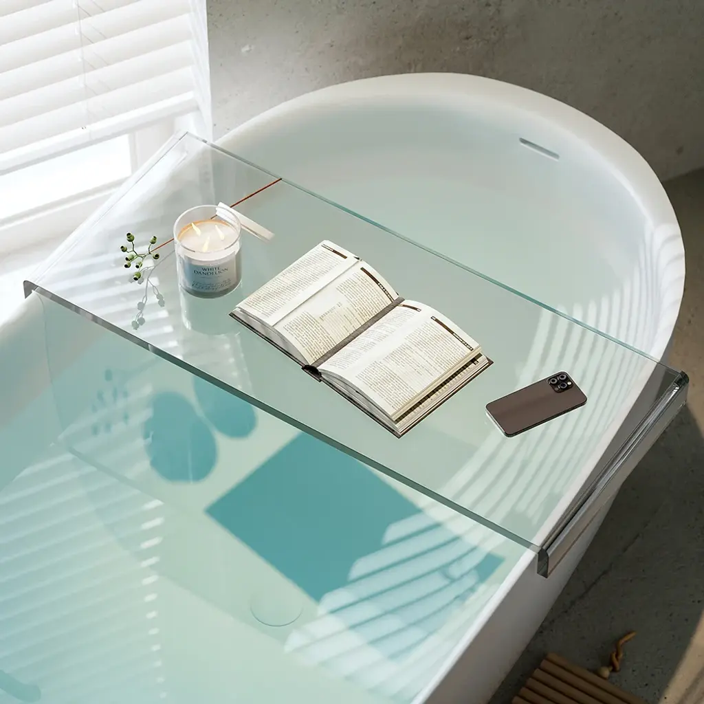 The perfect gift for yourself or someone. Meet our nordic clear bathtub tray, made of acrylic for durability. Waterproof, so if splashed or submerged in water, it will still withstand wear and tear. It can be the best choice for you in the bathroom to enjoy the relaxing bathtub time!