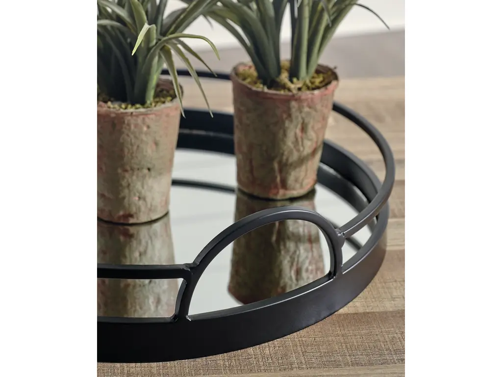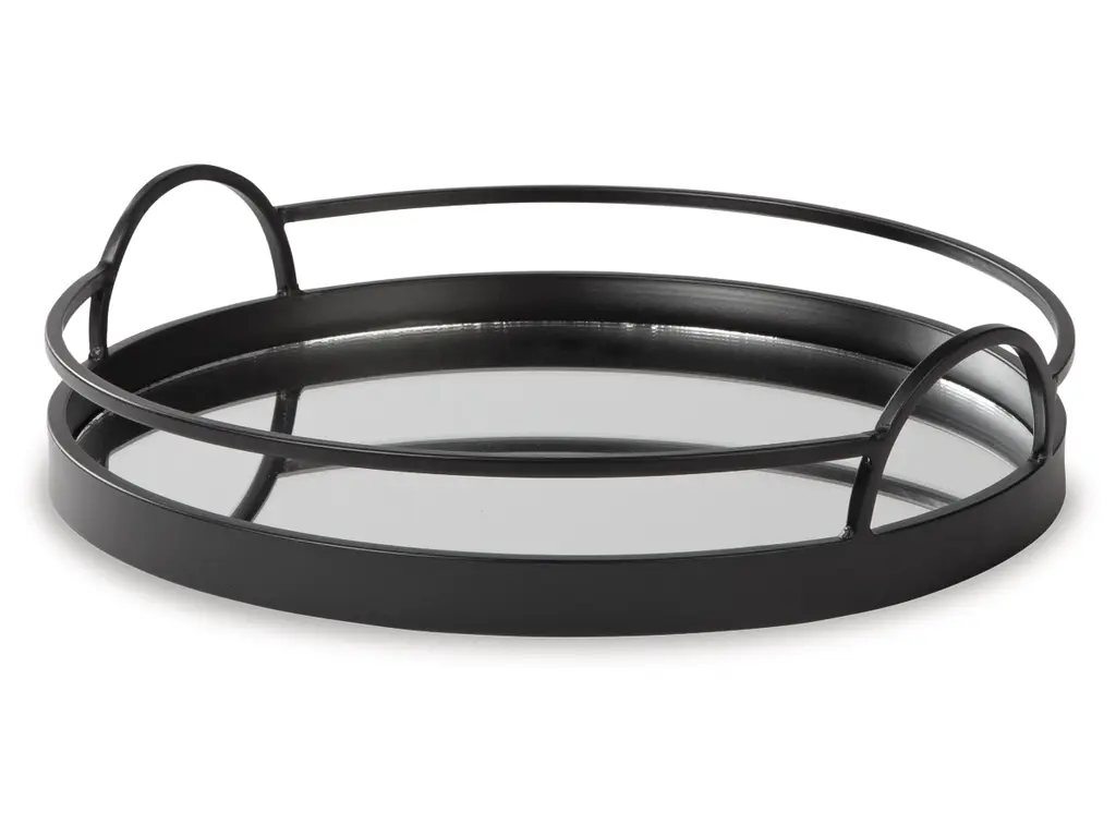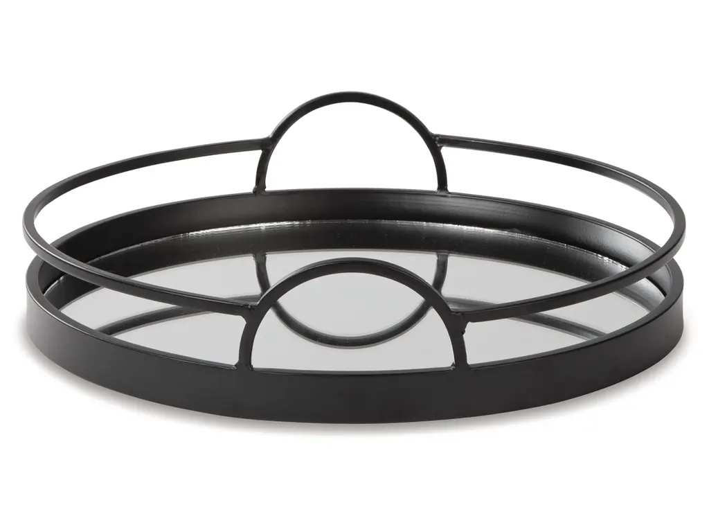 Crafted from metal, the Adria mirrored glass tray features raised railings along the circumference to ensure the safety of your favorite keepsakes. Versatile and visually elevating, this is a great choice for decor spaces with a contemporary feel and design.