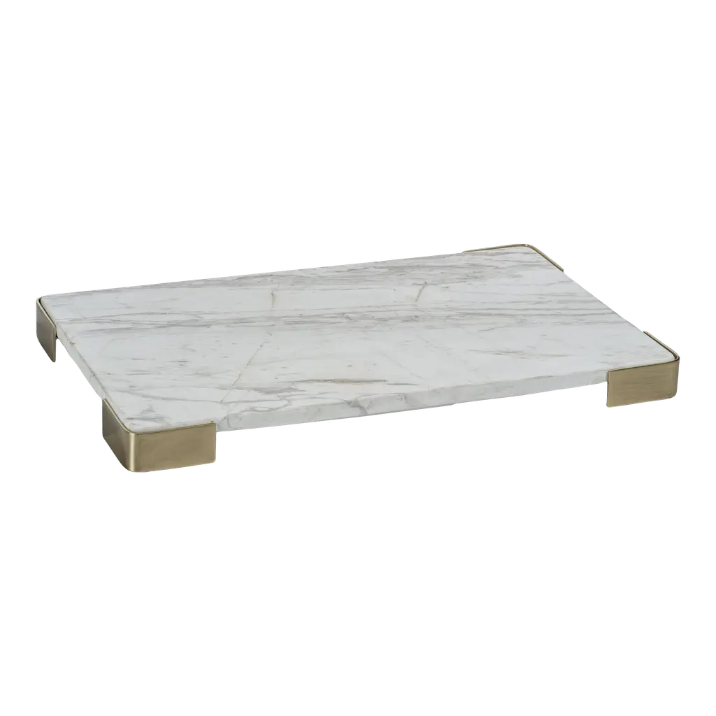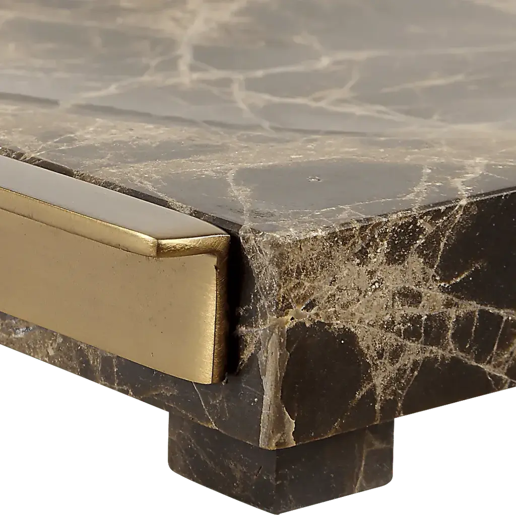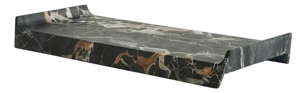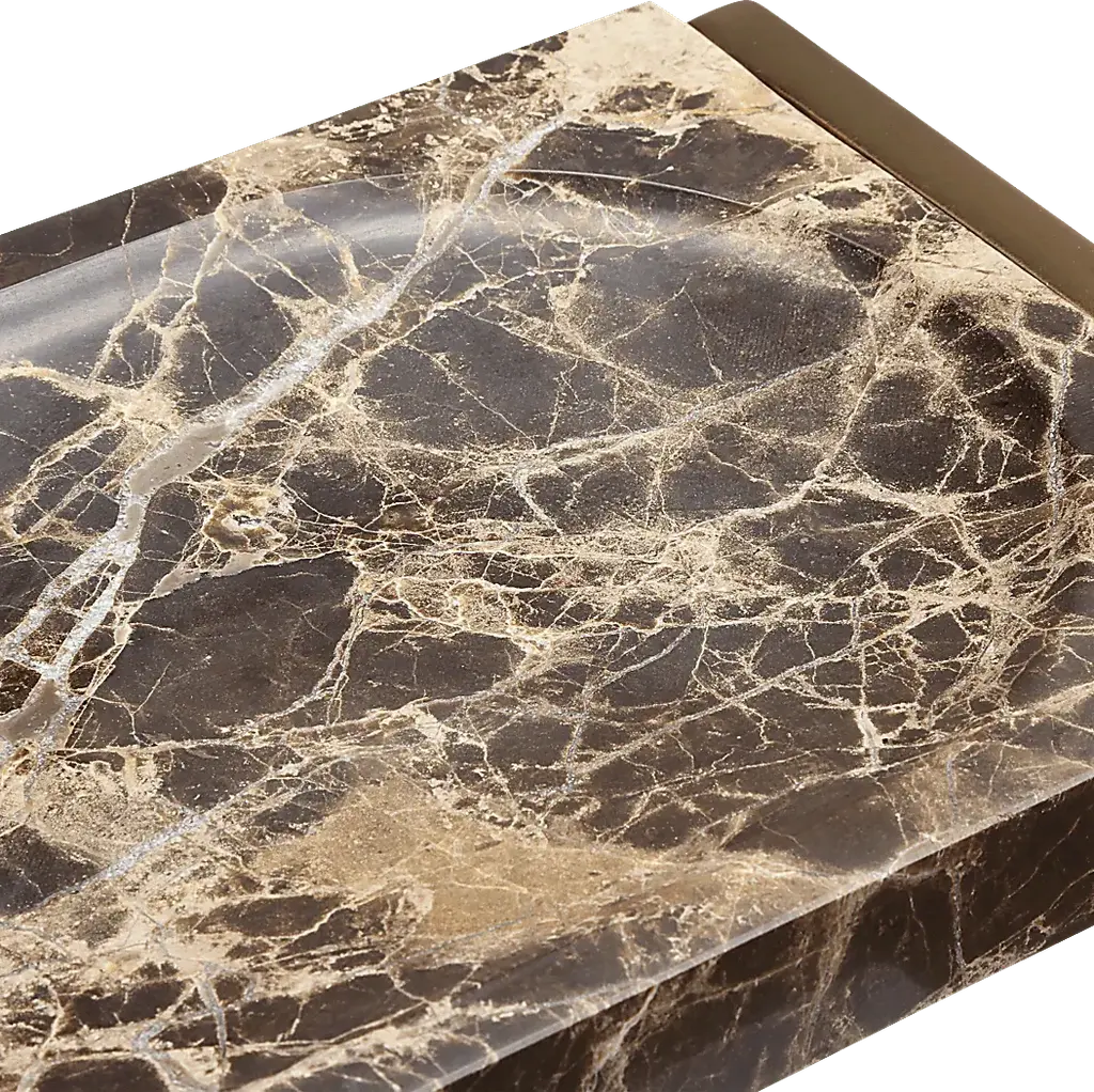 This luxurious Ailles tray is crafted from a thick marble slab featuring rich chocolates, black tones and striking cream veins. Completed with contemporary brass handles on each end making this tray a lesson in sophistication that is not only functional, but also a statement piece.