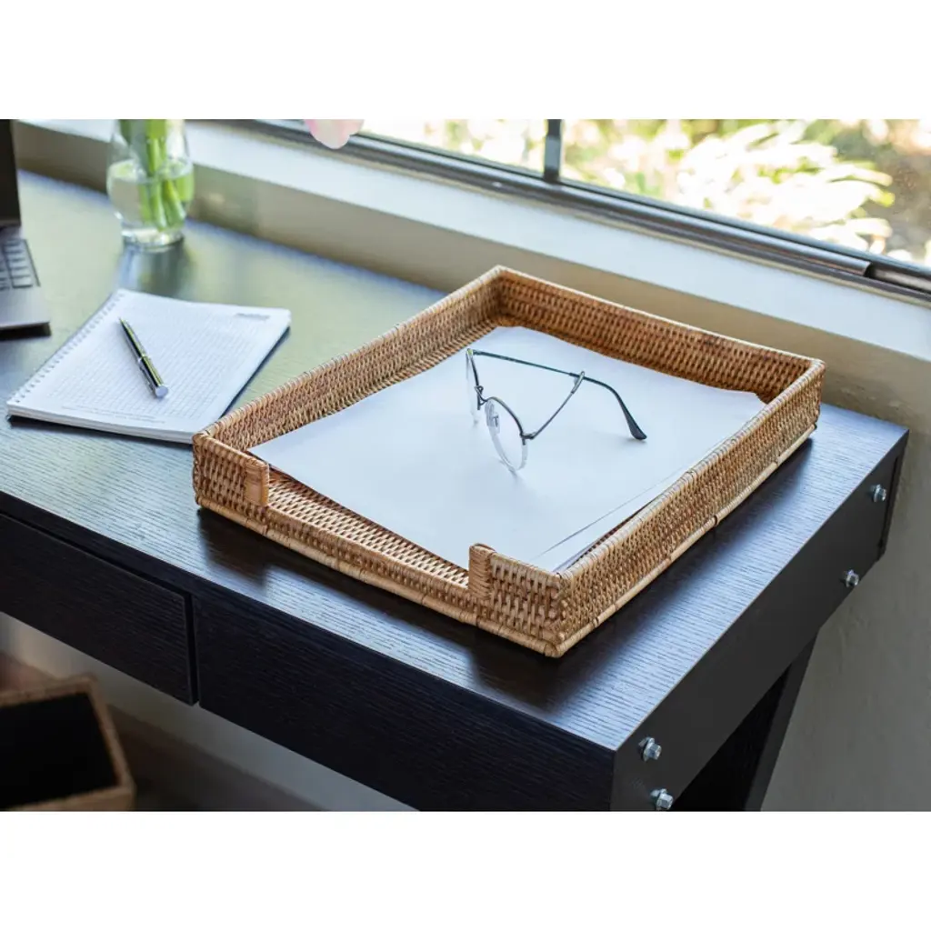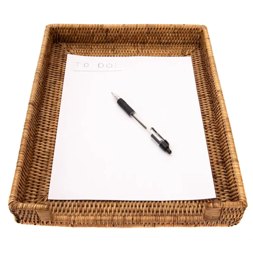 The product hand woven trays and baskets provide the perfect accent to any room in the house with a tight weave, durable construction, with exquisite and impeccable quality. Woven from Burmese rattan which is natural and sustainable, these rattan trays and baskets come stained in a rich honey-brown to provide a sophisticated and perfect finishing touch. Products are handmade and each piece is unique therefore slight variations and imperfections exist.