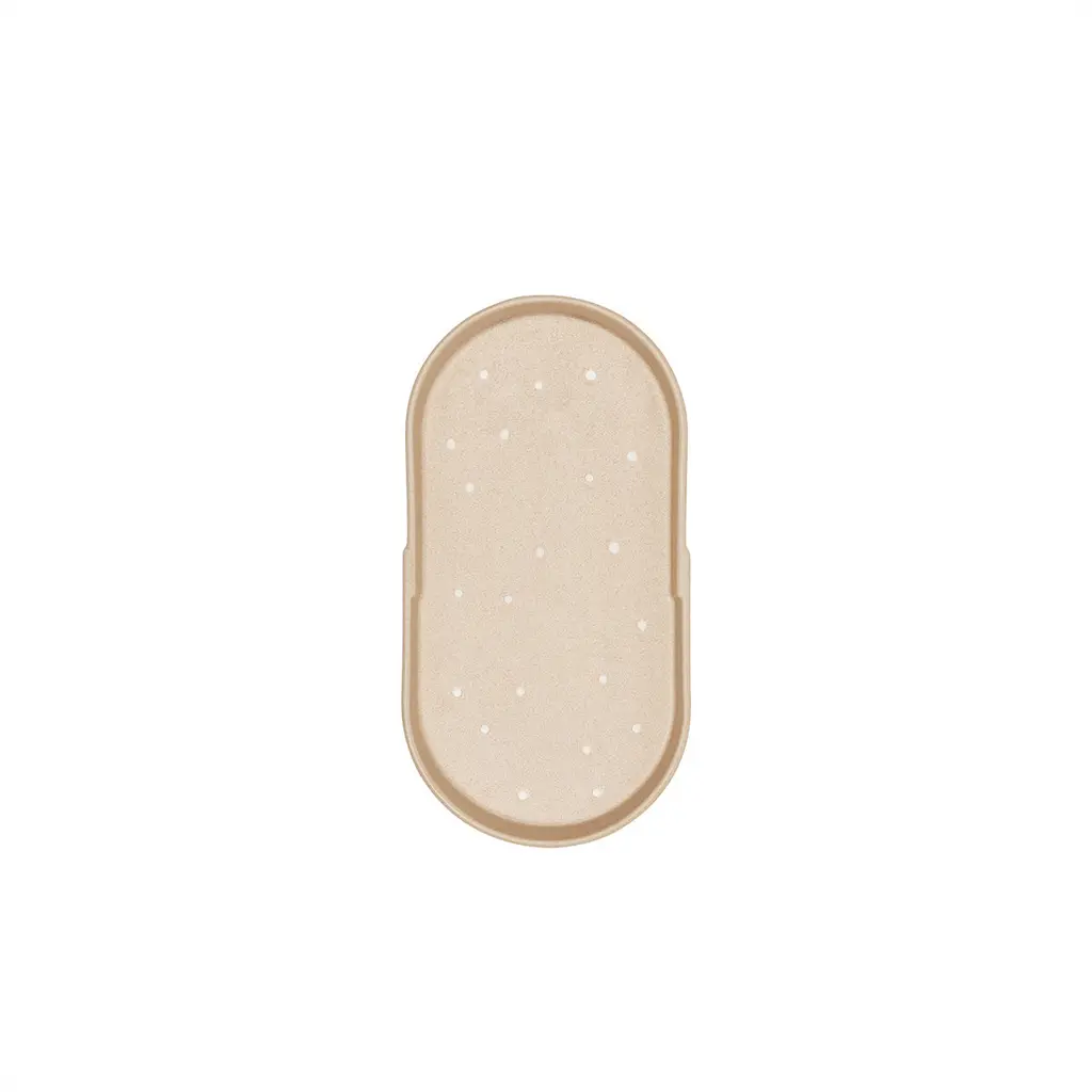The oval Aki Tray is made of stoneware and handpainted with cute random dots for a unique and playful expression. The tray has a simple and raw look which decorates beautifully. Use the tray for food serving, for storage or for fruits. The tray is available in two sizes.