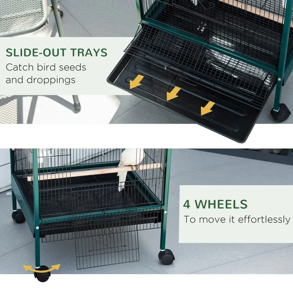 Akoasm 55 Inch Large Parakeets Budgies Bird Cage & Bird House With Multidoors, Stand And Trays-green