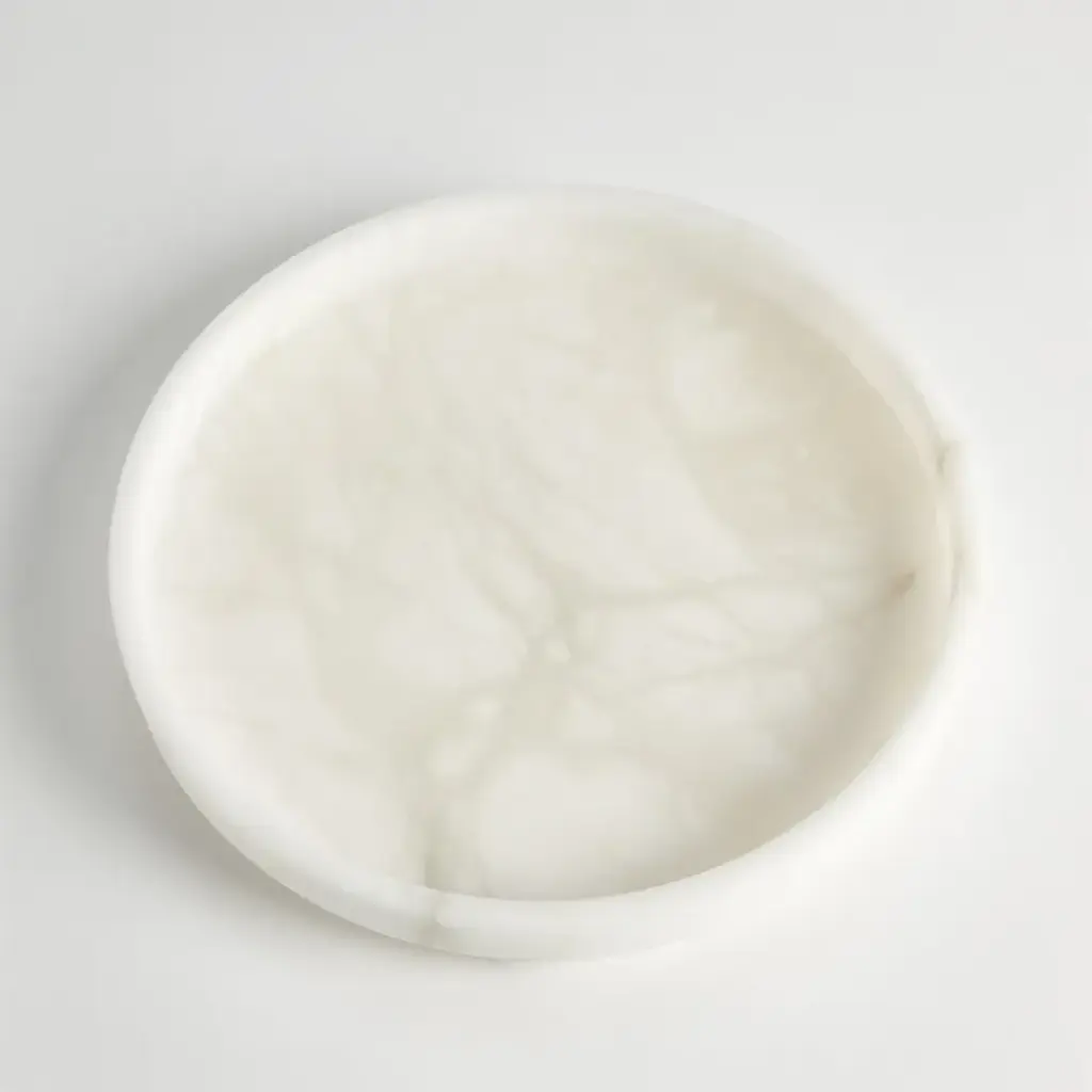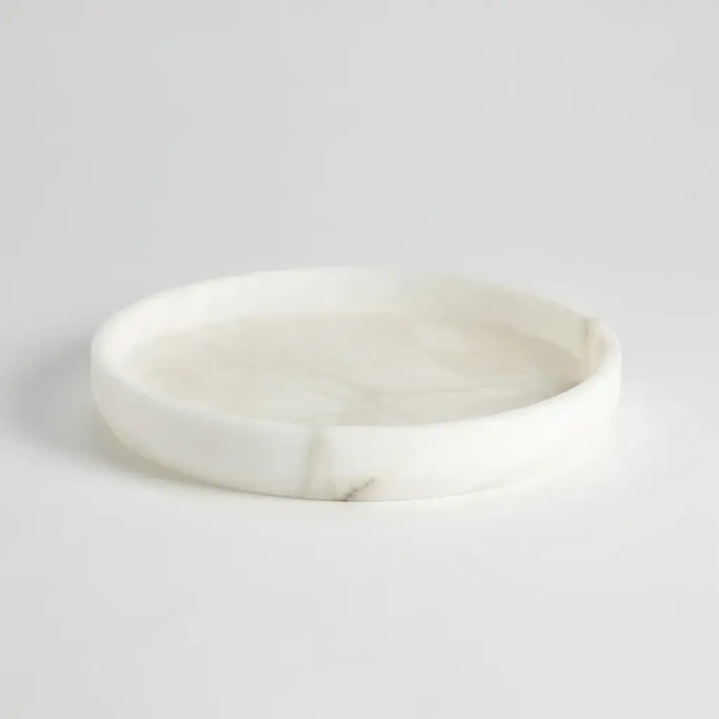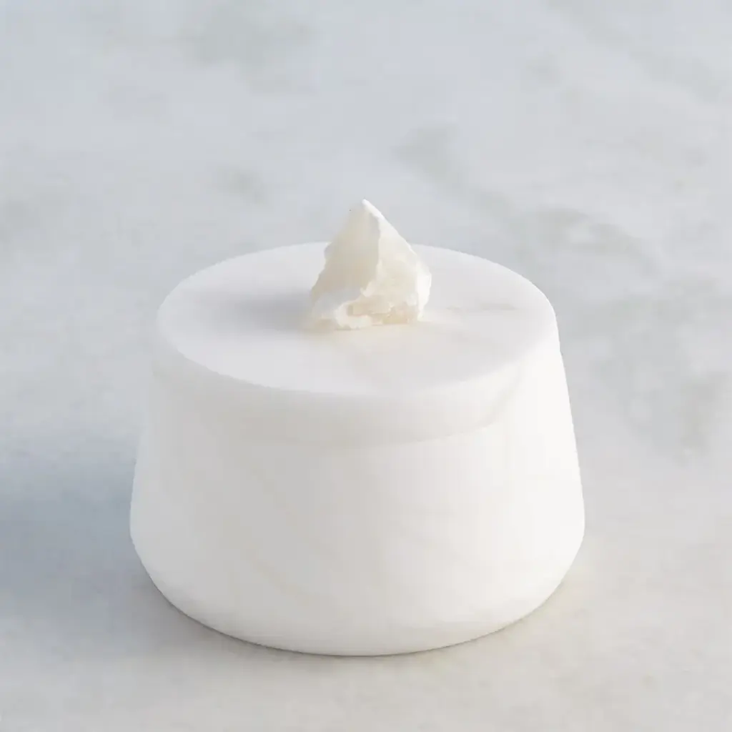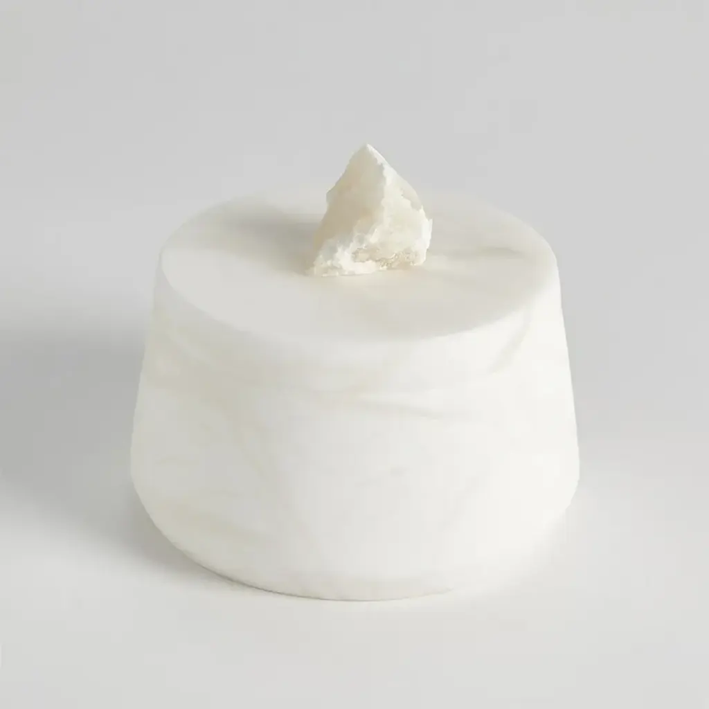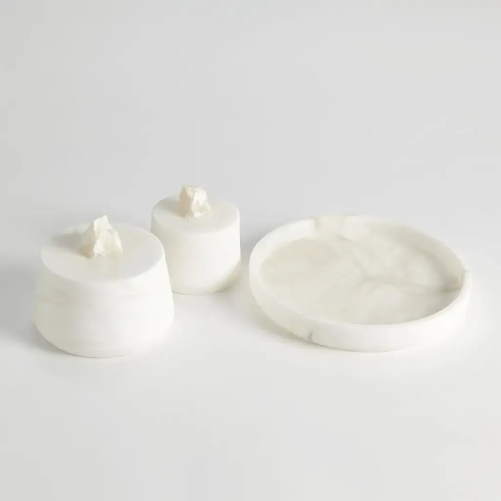 Elegantly hand hewn white Italian alabaster boxes with raw edge handles and tray originating from a veil in Tuscany which has been quarried by the same family for centuries. As alabaster is a natural product, please be aware that there will always be variations in veining and color. This is to be expected and makes every alabaster product uniquely your own. From a fashion forward perspective, Global Views offers accessories, furniture, statement lighting, and an assortment of rugs and mirrors to add beauty and joy to your home.