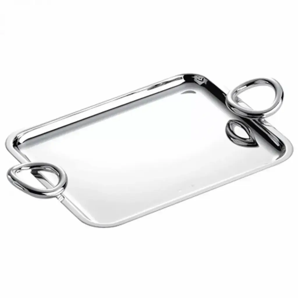The extra large silver plated rectangular tray with two handles in the Albi pattern is ideal for beverage service or tray-passed appetizers at an event. The Albi line, created in 1968, takes its inspiration from a French town located between Toulouse and Bordeaux and its famous cathedral known for its remarkable architecture, clean straight lines and single nave. Thanks to its creations in silver, Christofle is a symbol of luxury and elegance. Since its founding in the mid-19th century, it has been a continous innovative force and has infused each era with a new art of living. Thus, over time, this prestigious company has revolutionized styles, techniques, and methods for the production and distribution of silver plate and the decorative arts. A player in and privileged witness to the evolution of taste, customs, and traditions, Christofle has always seen its name associated with major creative trends, renowned artists such as Man Ray or Jean Cocteau, avant-garde architects such as Gio Ponti, and modernist silversmiths such as Lino Sabattini and Christian Fjerdingsatd, as well as present-day designers such as Andrée Putman, Martin Szekely or Ora ïto. Today, as in the past, whether gracing the tables of emperors, princes, or maharajas, in palaces, on board the Trans-Siberian Railway, Orient Express, or transatlantic ocean liners, or in the contemporary restaurants, Christofle continues to make an impression.