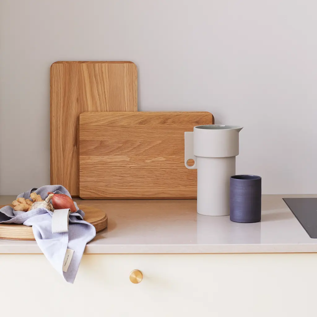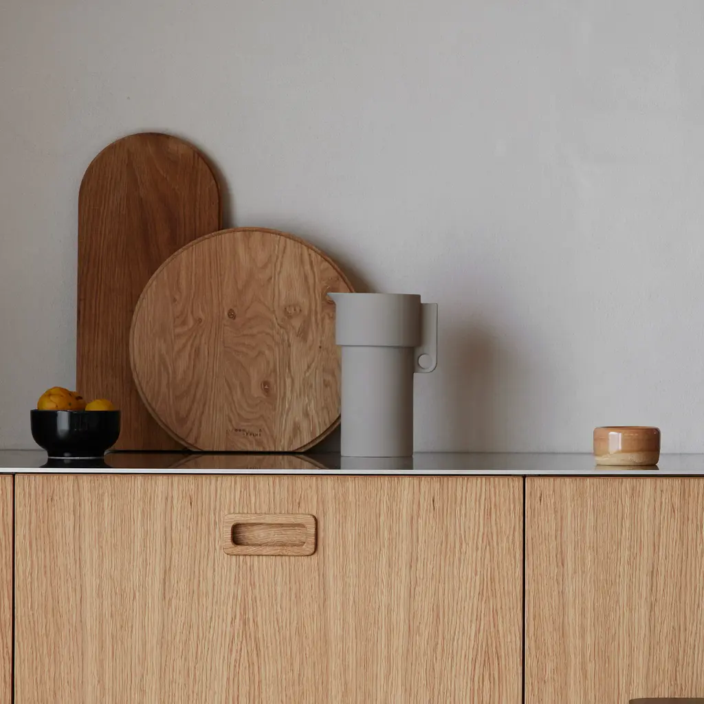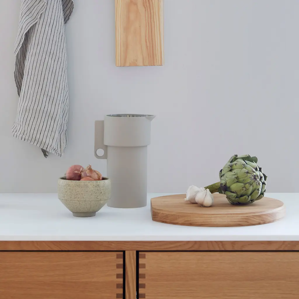 Crafted with intention and a nod to Portugal’s ceramic traditions, the Alcoa Tray and Pitcher Set from Form & Refine brings quiet elegance to any table. The matte gray exterior and high-gloss interior create a subtle tension—understated, but never dull. The compact handle feels sculptural yet practical, making the pitcher easy to carry and satisfying to use. Designed for daily rituals or shared meals, the set draws its name and material inspiration from Alcobaça, a region celebrated for its fine white clay. It’s functional without being fussy. The tray works as a base, a serving piece, or a standalone object. Together, they’re a study in restraint—purposeful, timeless, and easy to live with.