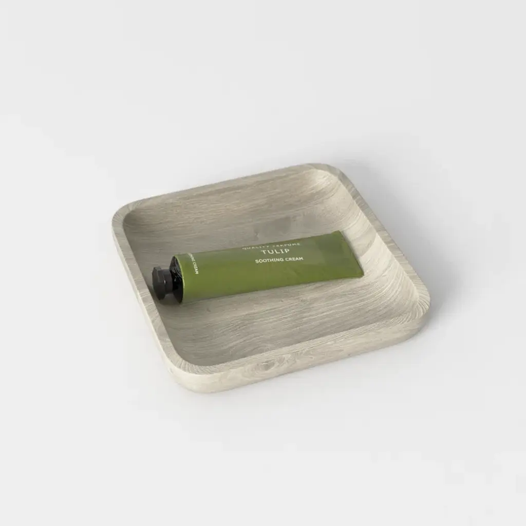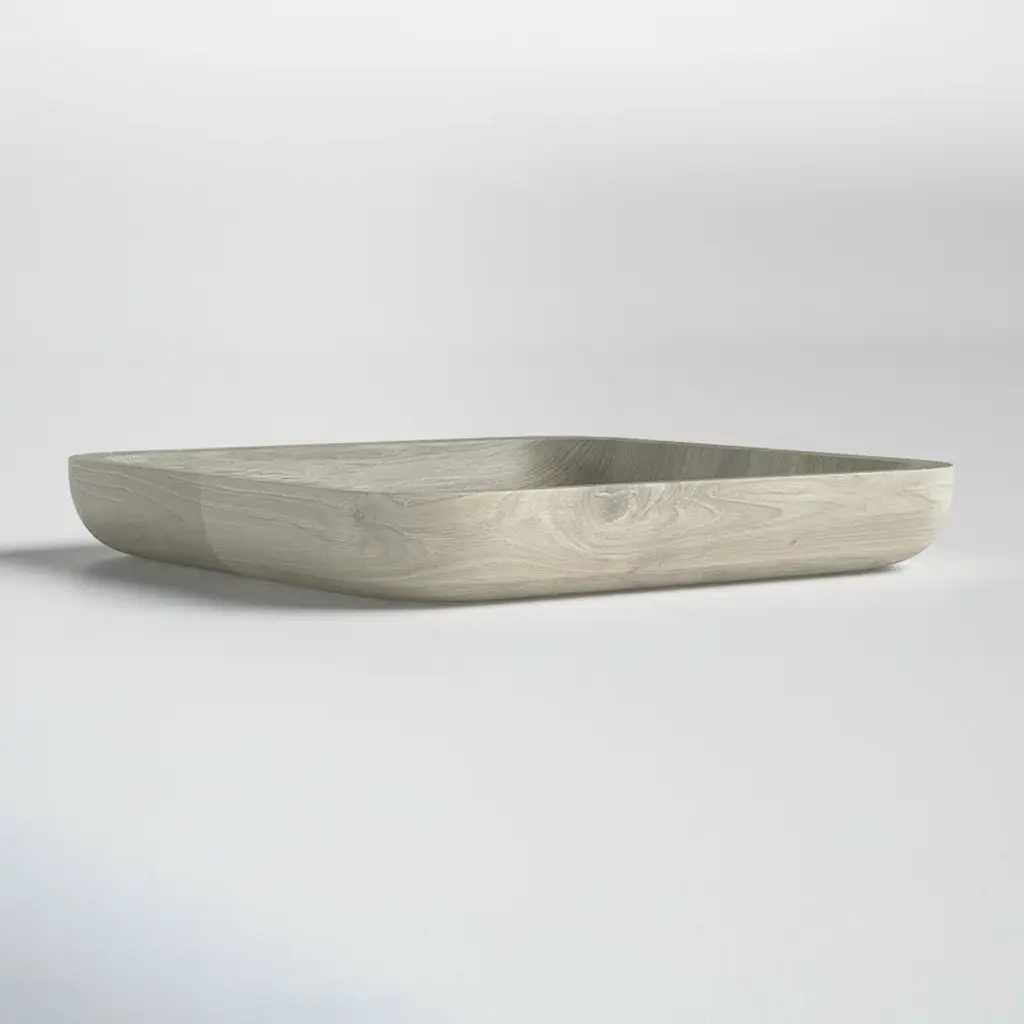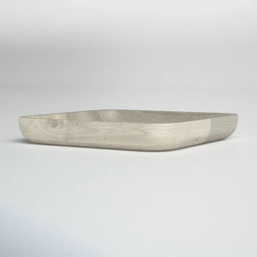 Warm organic elements and a clean-lined, minimalist silhouette come together with this versatile accessory tray. Crafted from solid mango wood with a whitewashed finish, it leans into an earthy minimalist look with warm wood grains and streamlined, rounded edges. It's also shatter-resistant and stands up to water, so it's designed for busy bathrooms. At 7.9'' wide and 7.9'' deep, this generously portioned container is sized to fit on vanity counters with room for your bathroom essentials.