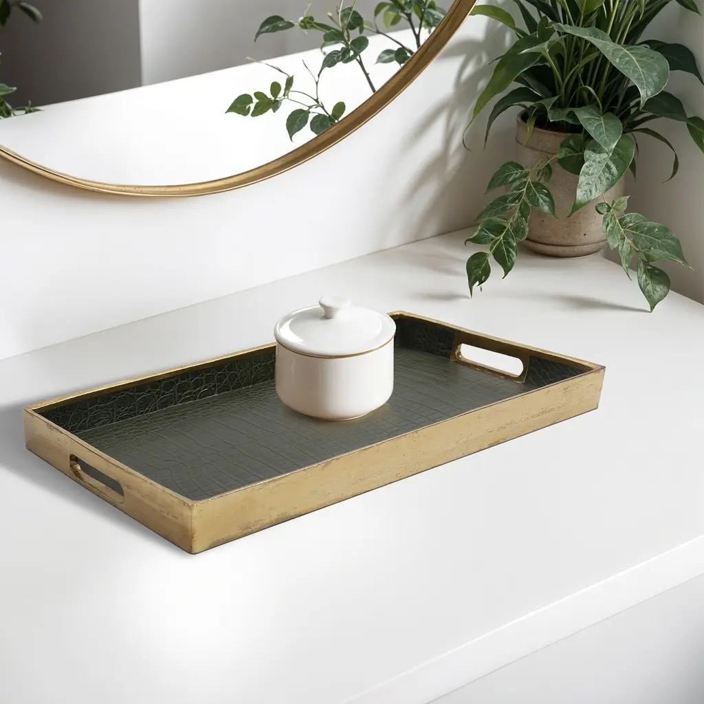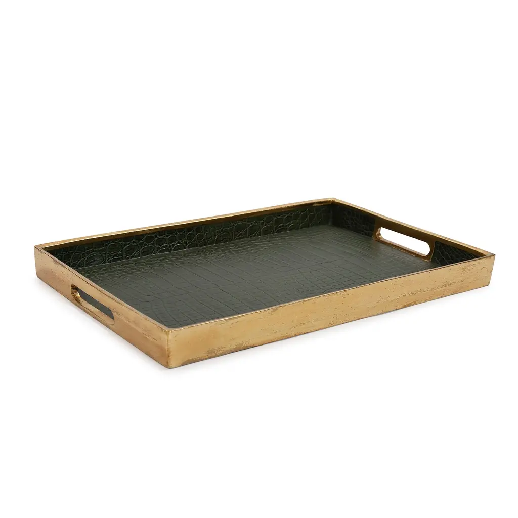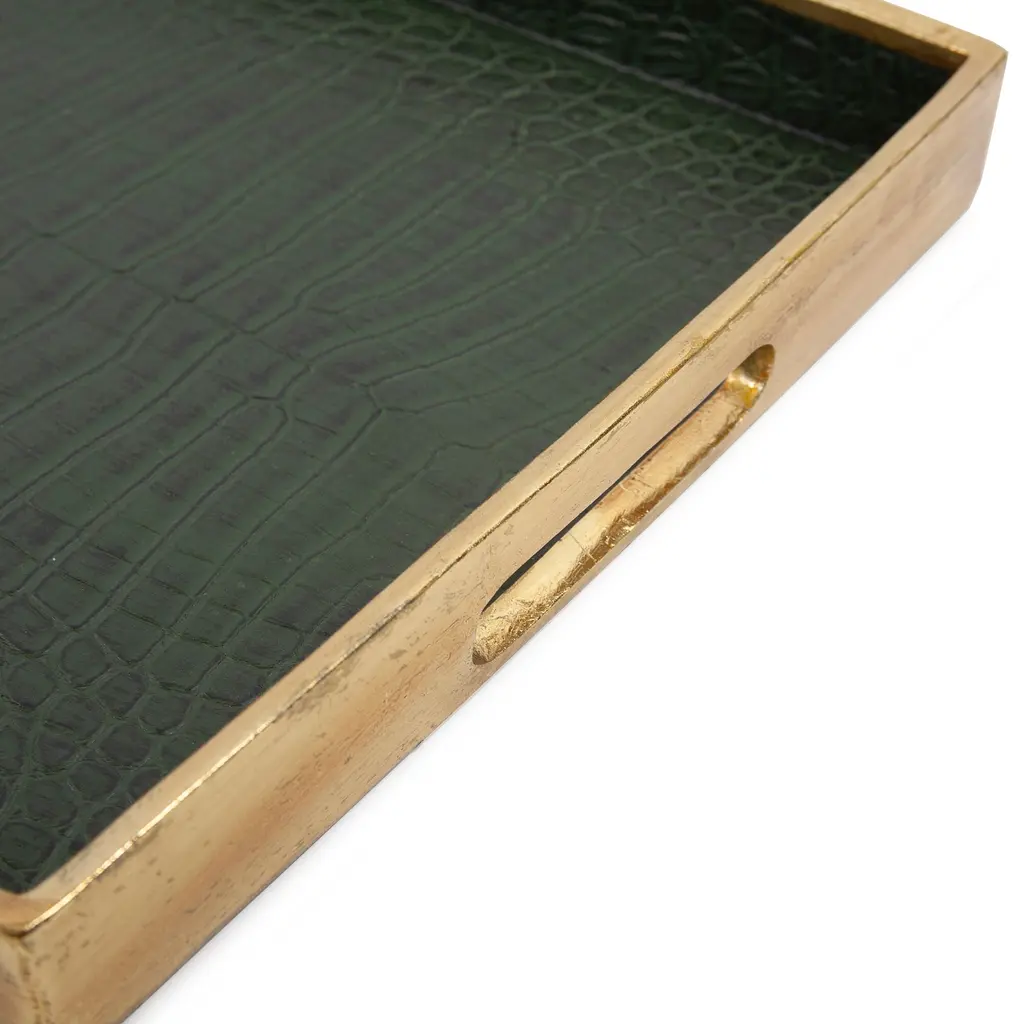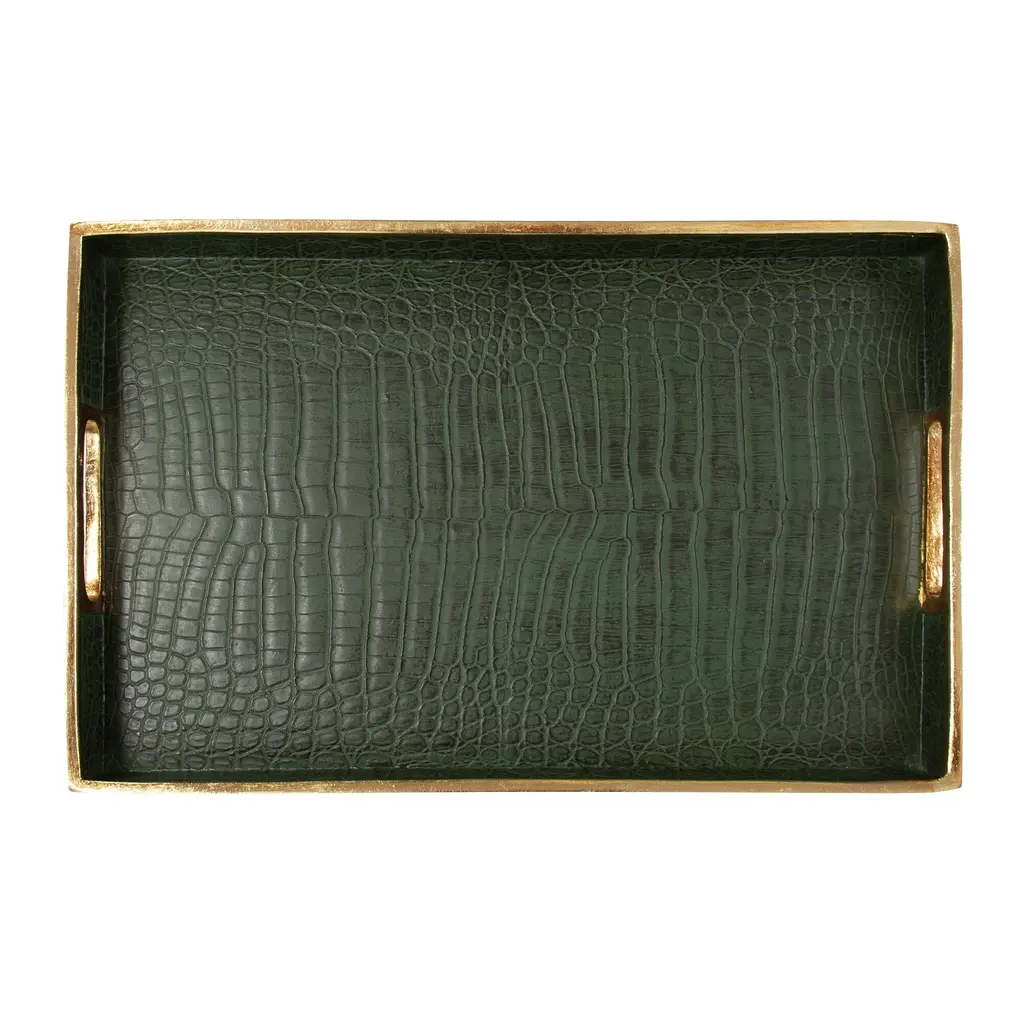 Allan Andrews Green & Gold Synthetic Embossed Alligator Tray - 20"w X 13.25"d - 20"w X 13.25"d - Green