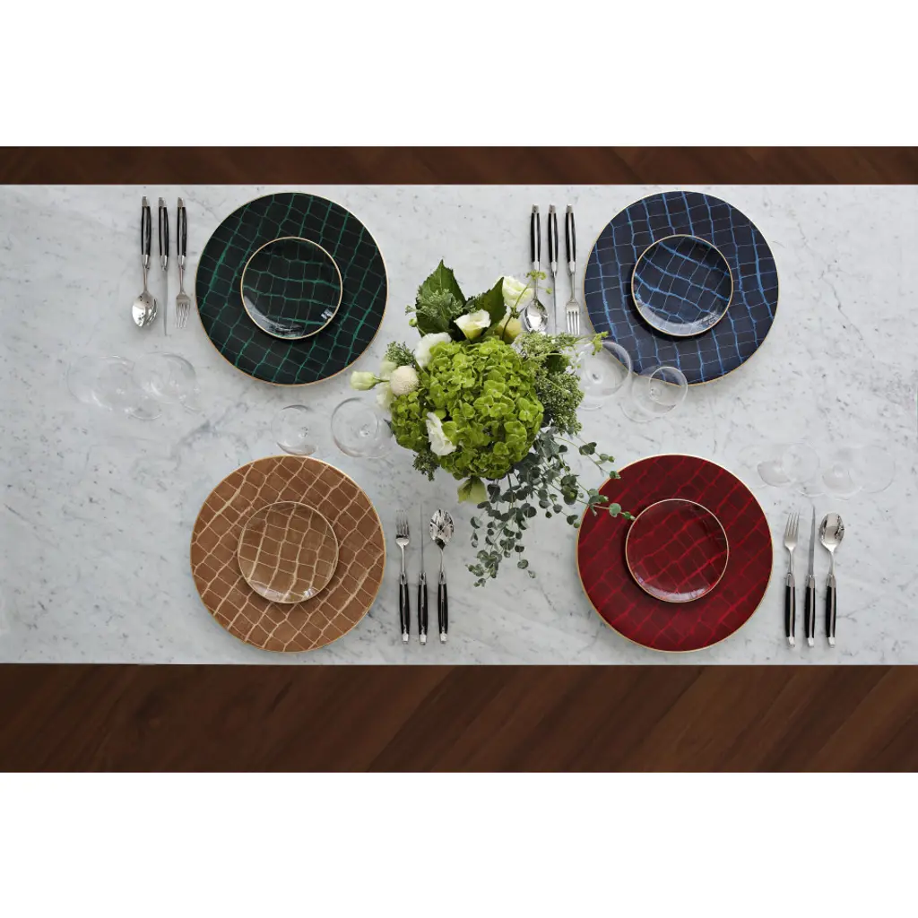 A favorite of Hollywood celebrities, Domenico Vacca's fashion line combines the best of Italian craftsmanship, superb fabrics, and a contemporary Italian cut. In his collection for the home, Vacca created an elegant line that's perfect for mixing and matching. Prouna Jewelry marries the beauty of fine bone china dinnerware with the sparkle of Swarovski Crystal Elements. Sculptural white china serves as an elegant base to hand-painted designs, gold and platinum ornamentation and dazzling arrays of Swarovski crystals. With several patterns to choose from, each with its own unique story, you're sure to find one you love. The crystals are attached with a special method that is tested dishwasher safe. A true marriage of technology and style, Prouna Jewelry Dinnerware is the height of luxury.