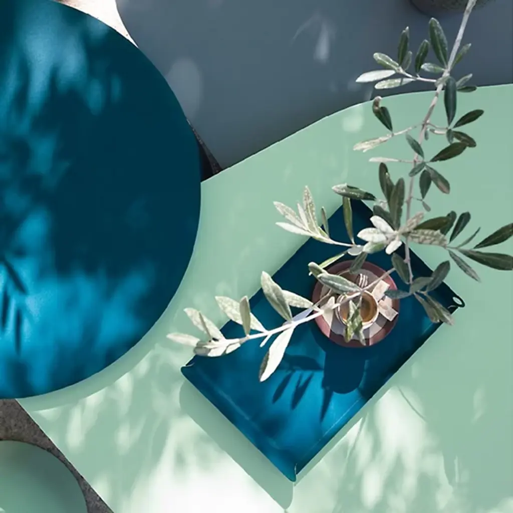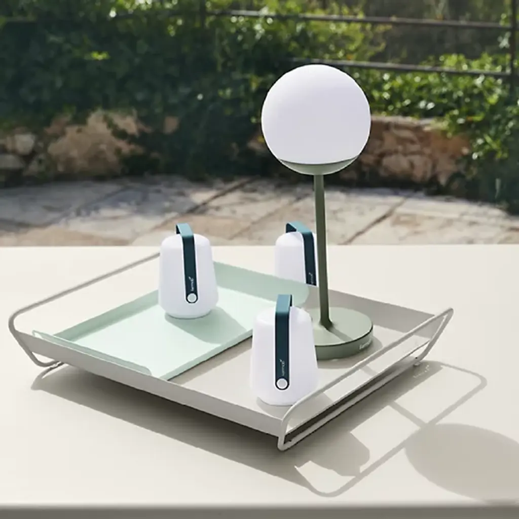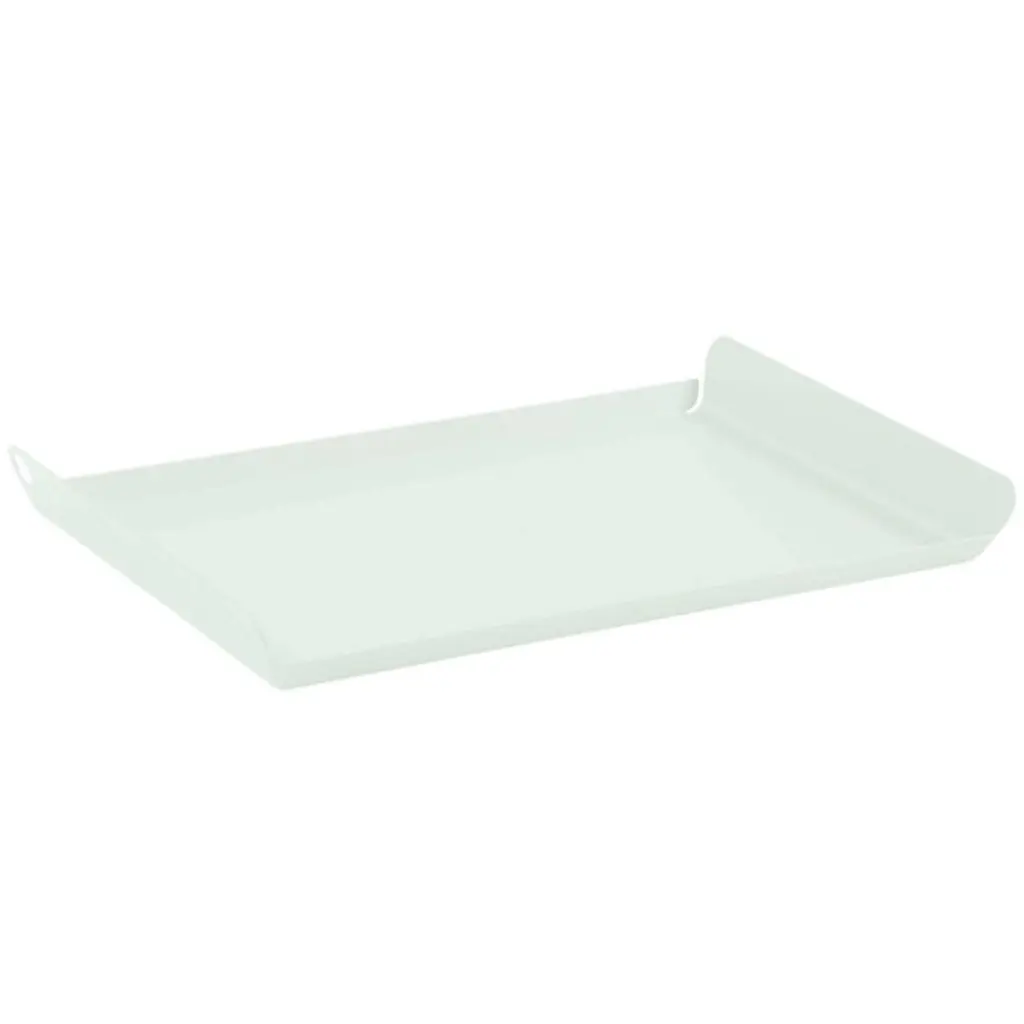 A charming way to serve or display. The Alto 14-In. x 9-In. Tray by Fermob is a small and sleek tray, designed to either effortlessly carry a couple of drinks and nibbles to the pool, or to provide the foundation for a decorative centerpiece on a modern occasional table. This petite tray is made out of expertly curved sheet Steel, with a UV-resistant, electro-galvanized finish for enduring good looks, no matter where you place it. The wide handles make the tray easy to carry, as well as give it added height and drama in more display-centric applications, indoors or out.