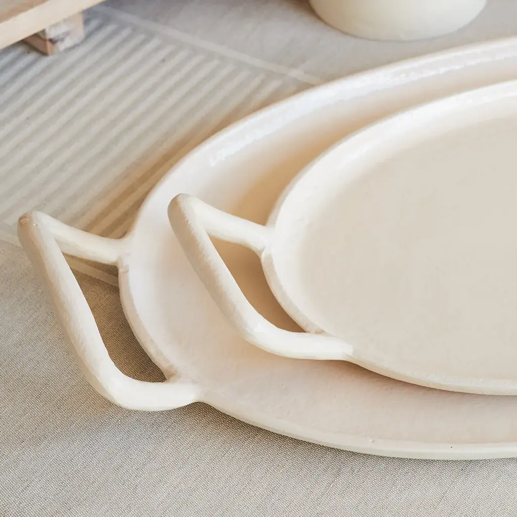 Aluminum Tray With Handle In Cream, 16 X 9.5 In