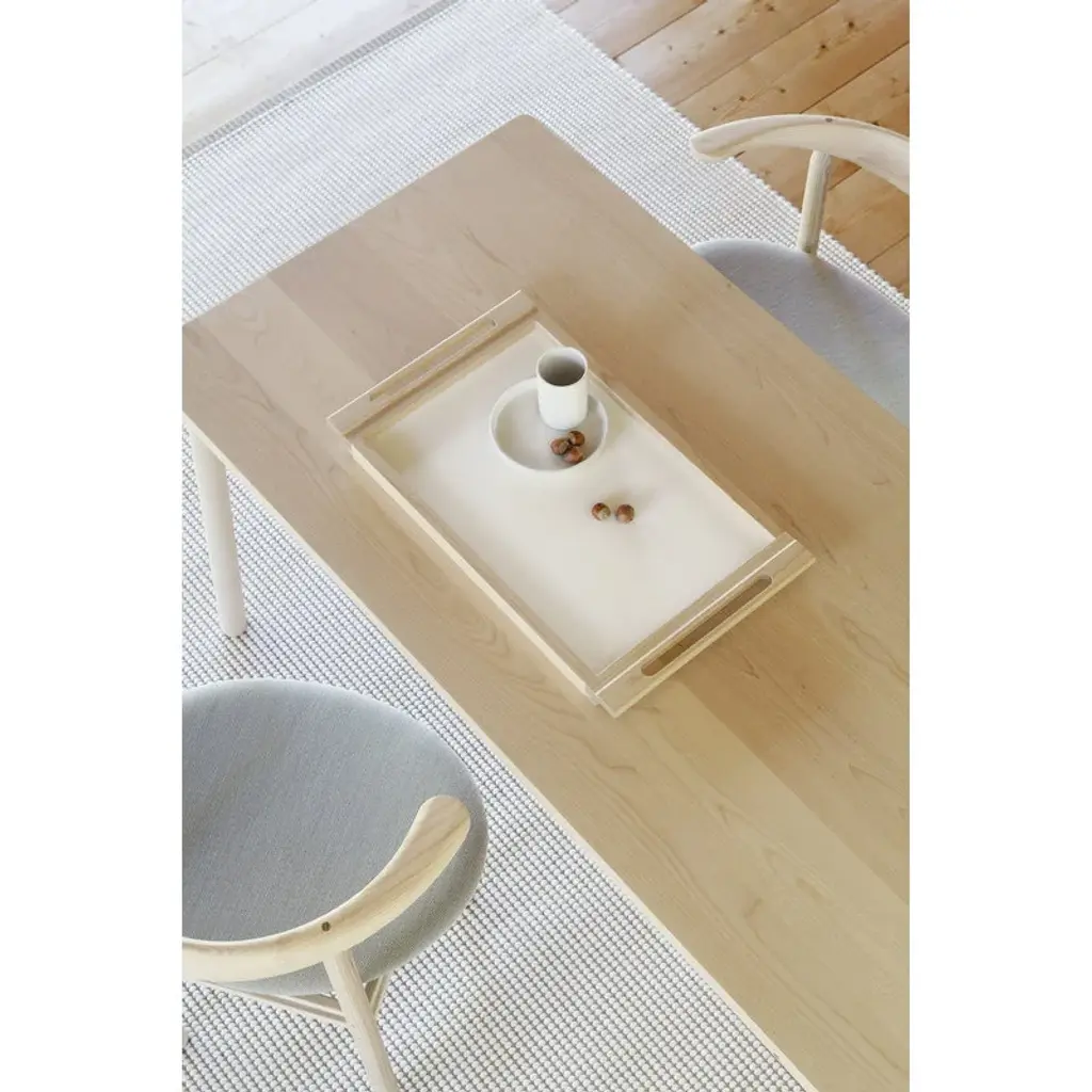 The Alvar tray is a beautiful everyday object designed by Alvar Aalto in the 1960s, originally for a community center located in Seinäjoki, Finland. The tray pays homage to the long-lasting collaboration between Aalto and Nikari’s founder, carpenter Kari Virtanen, and is the oldest product in Nikari's collection. The clean-lined tray features a white laminate top and a light birch frame that has been treated with natural oil mixture. Due to the handles on each end, the tray is easy to carry around. The Alvar tray has a simple and functional design that will stand the test of time. The Alvar tray is part of Nikari's Arte collection that features products designed for various special projects. Nikari products are made in Finland using only certified wood.