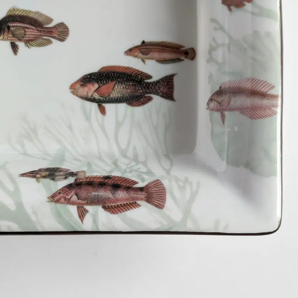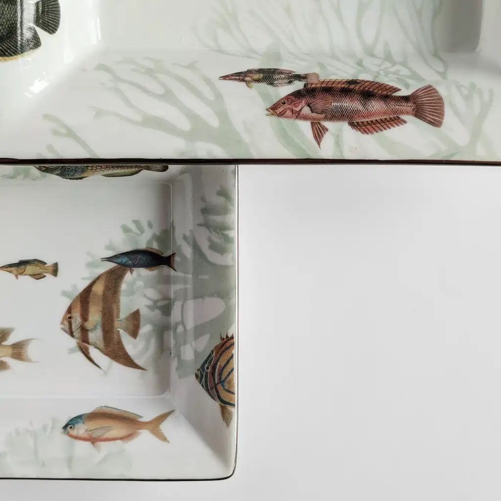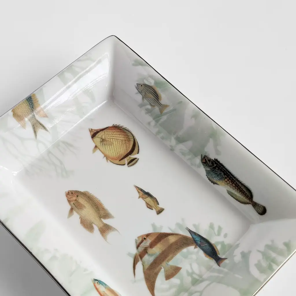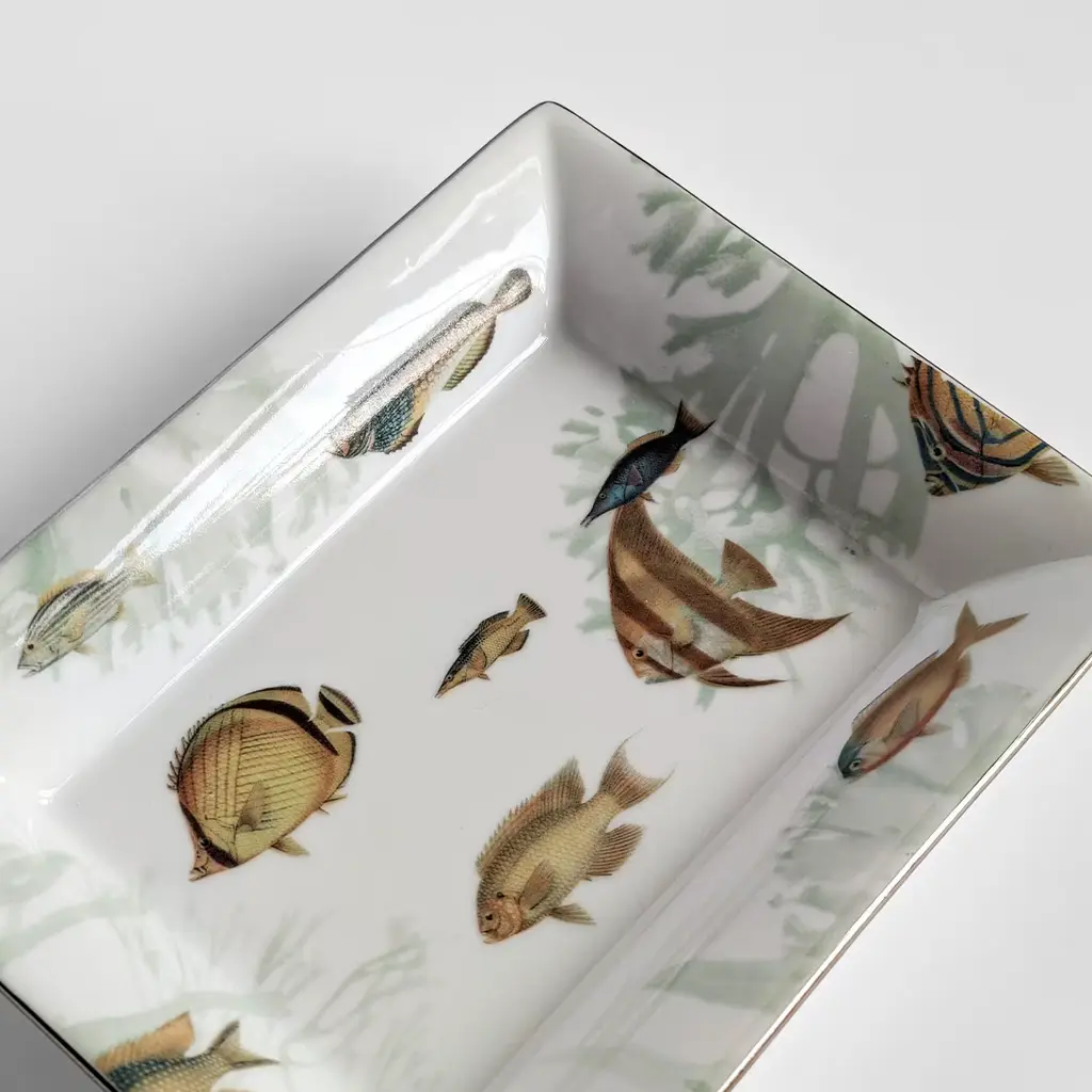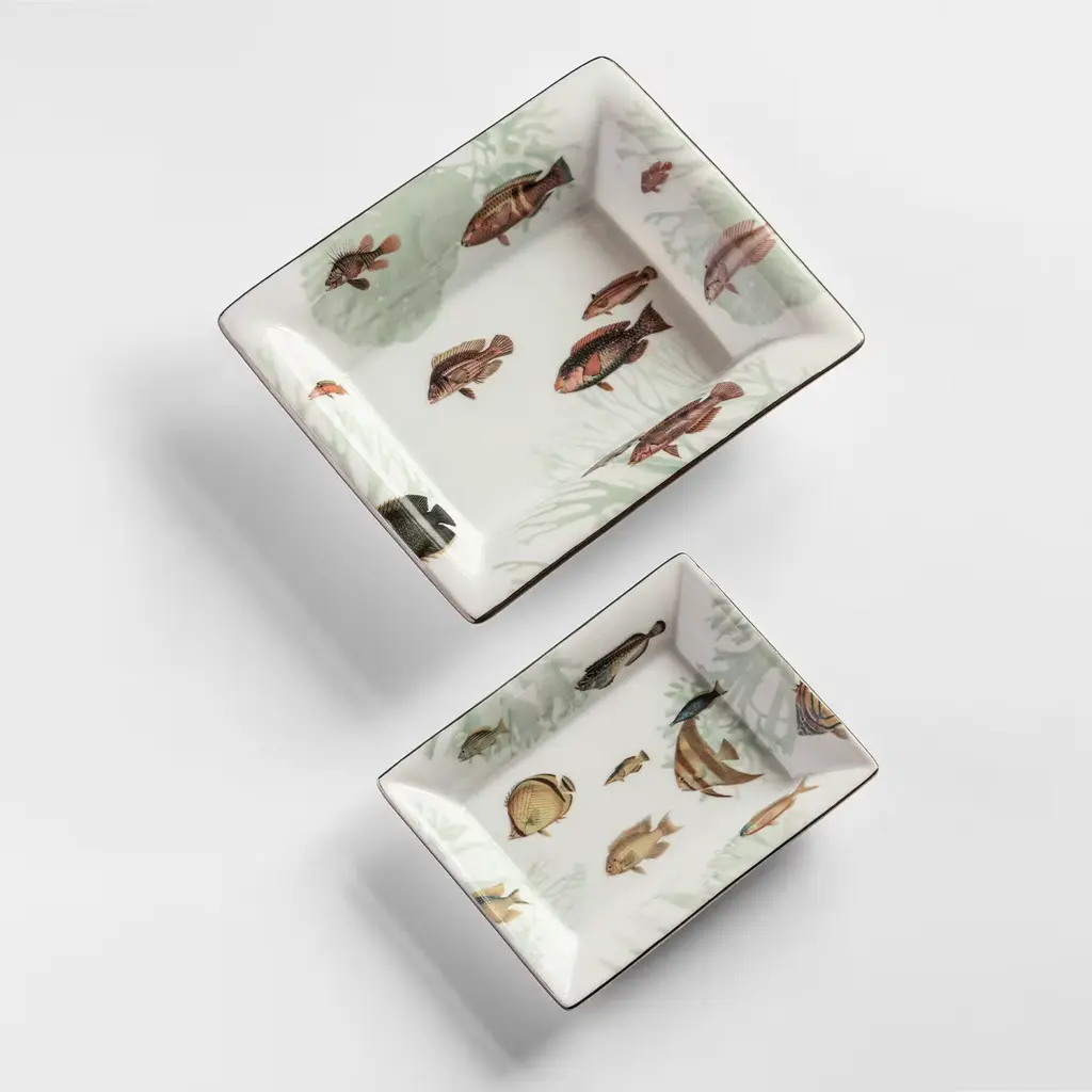 Amami Set Of Porcelain Ashtray And Vide-Poche With Tropical Fish