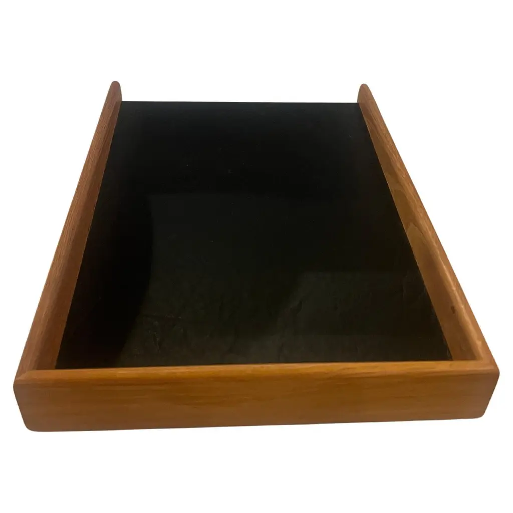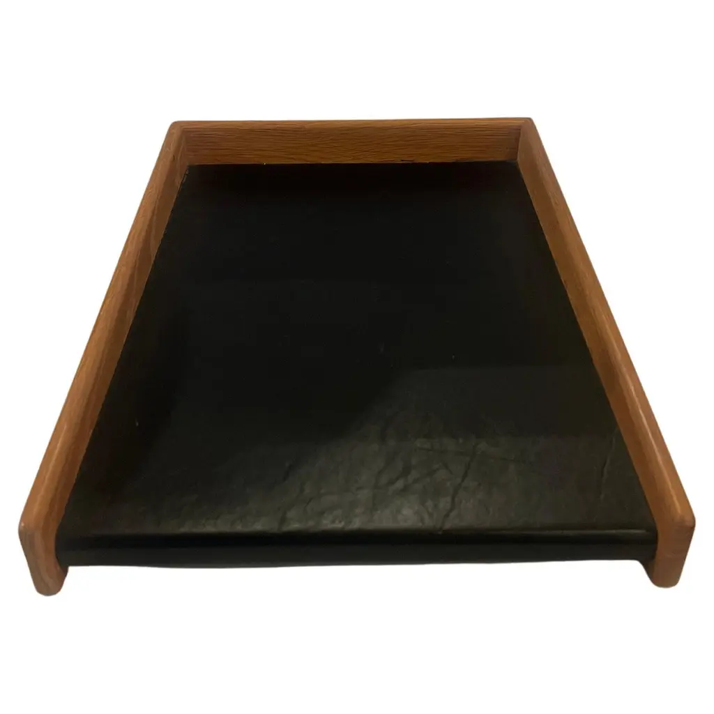 American Mid-Century Modern Oak & Naugahyde Modernist Paper Desk Tray 2 Avail.