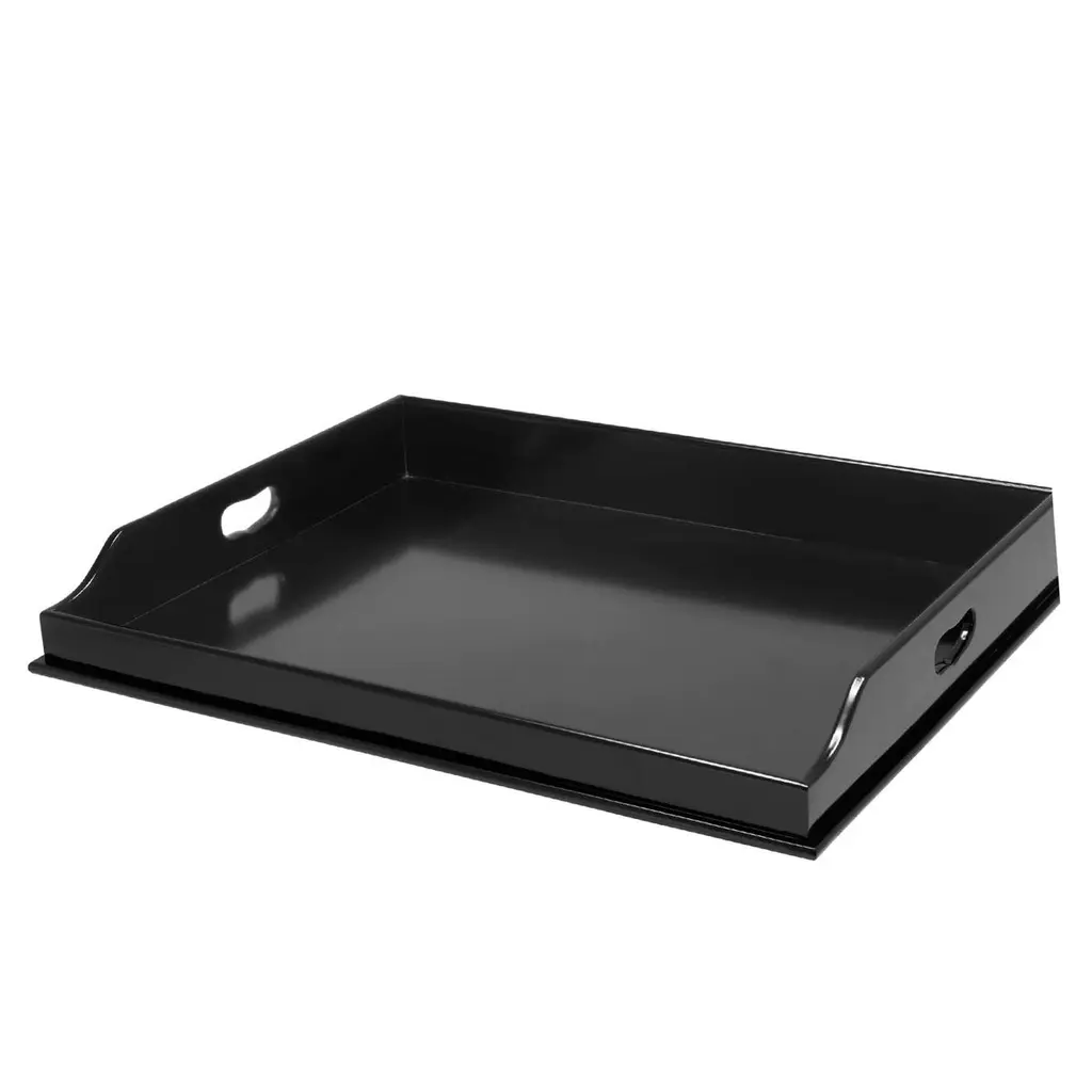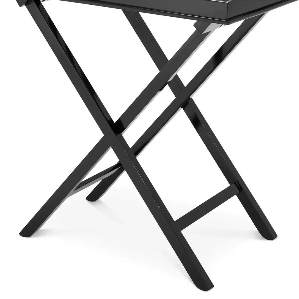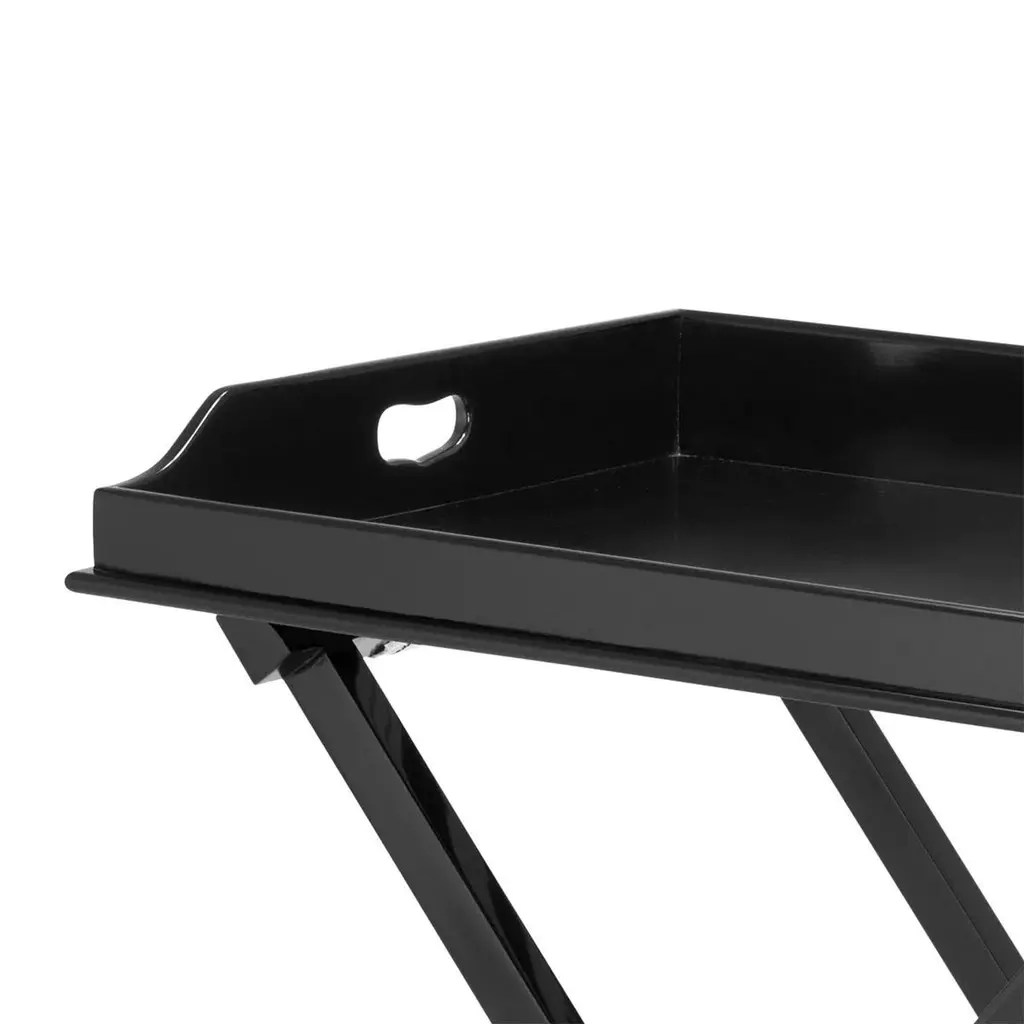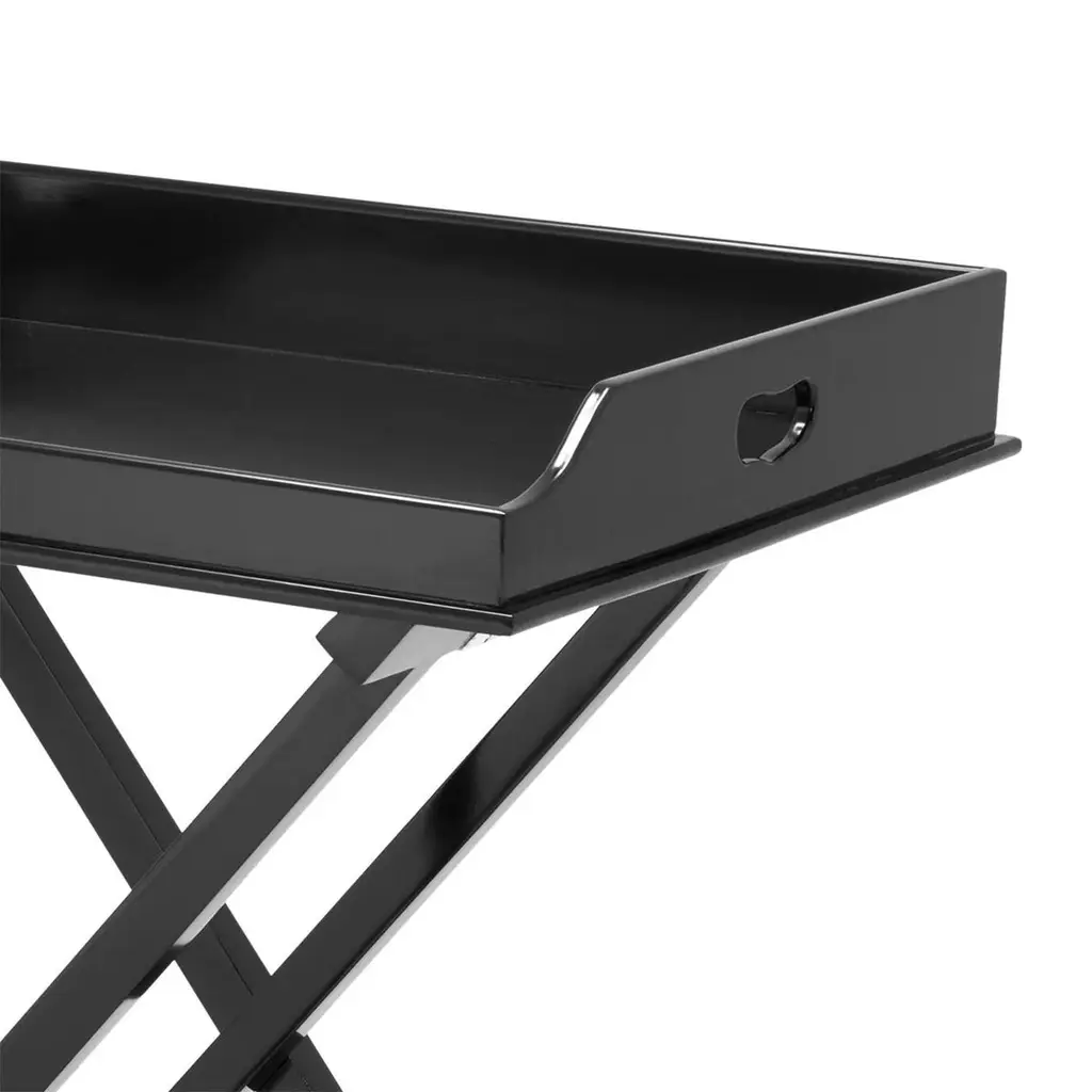 Tray Andrew Majordome in solid mahogany woodin black lacquered finish. Movable tray on cross legsbase.