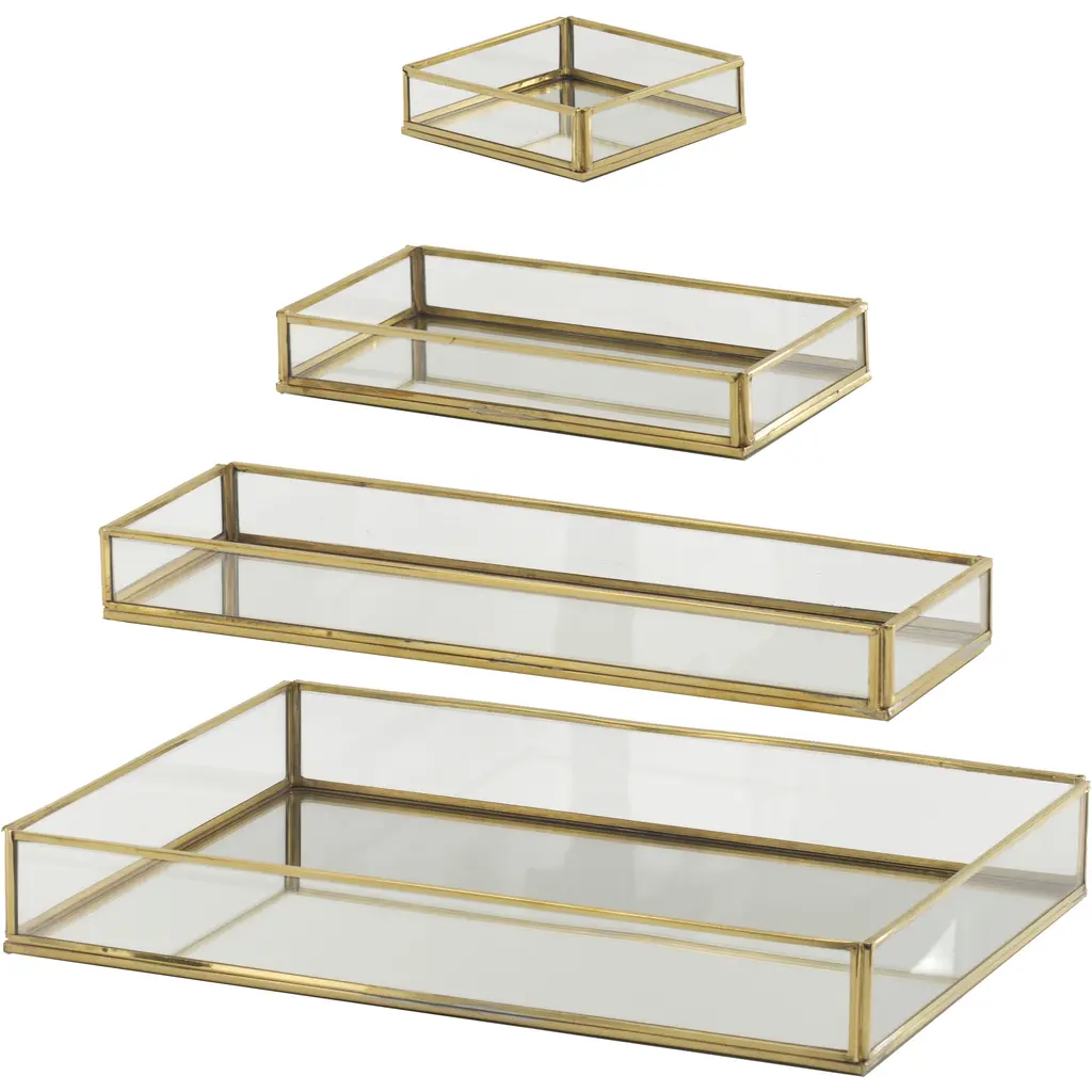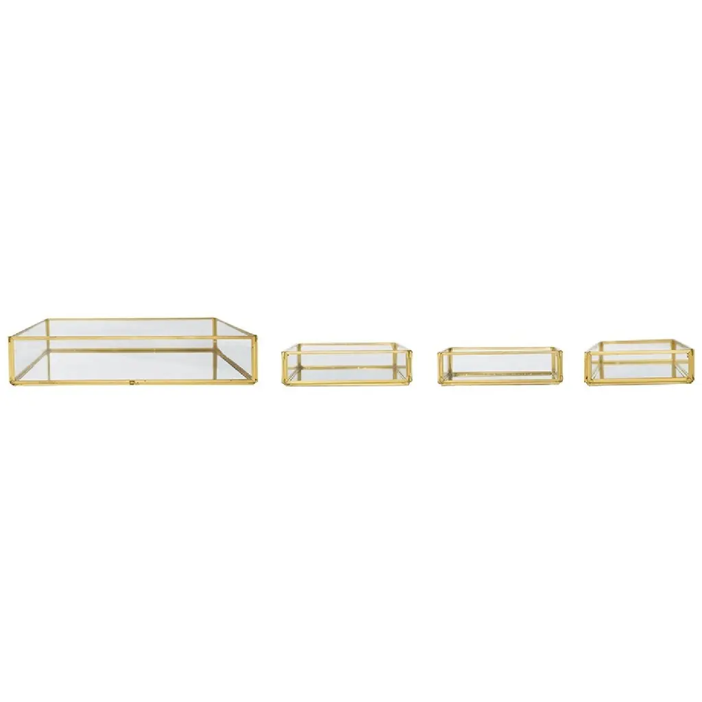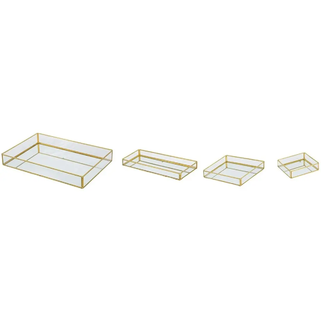 Glass Trays with Gold Rim - Set of 4 - Clear/Gold