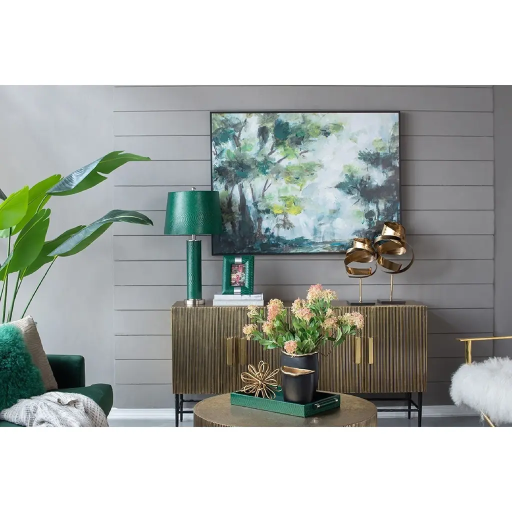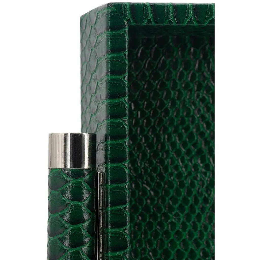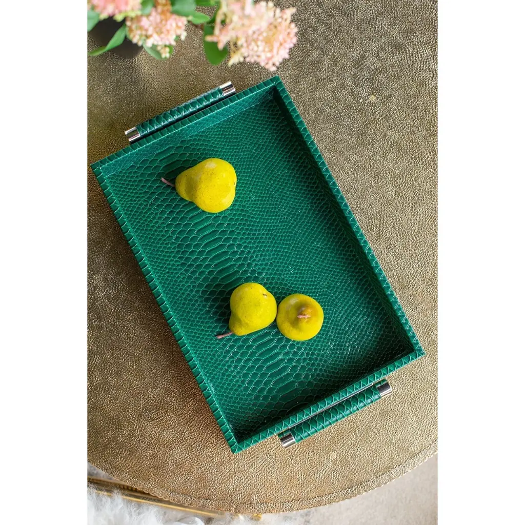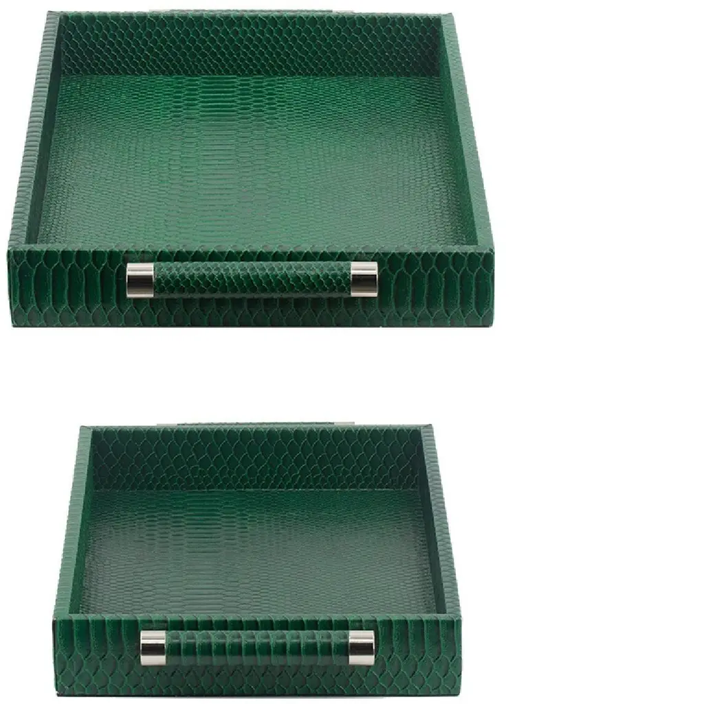The set of 2 Morelet trays adds a touch of drama to your room with their deep green color. Accented with sophisticated croco texture and touches of silver these trays are a stylish way to organize your space.