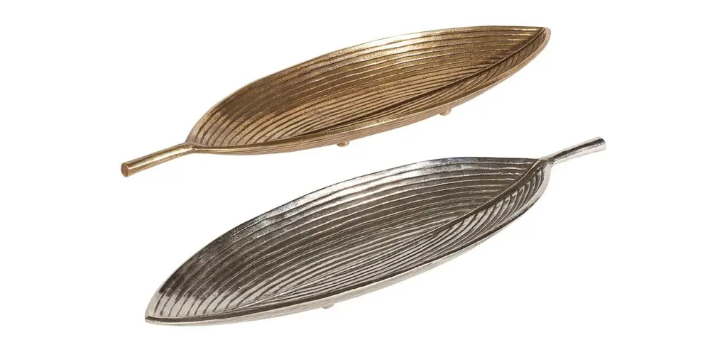 Bring a little piece of nature indoors. Available in your choice of metallic finish, this antique-style leaf-shaped tray boasts a low, linear form fit for coffee tables, consoles, and more.