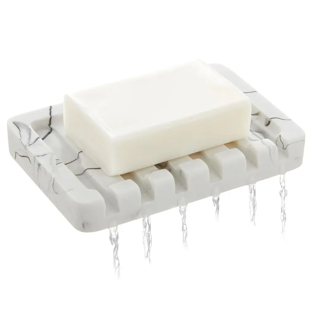 Aoibox 2-pack Self-draining Soap Dish With Marble Look, Soap Holder Tray For Bathroom, Shower, Kitchen, White, Includes Sponge Holder