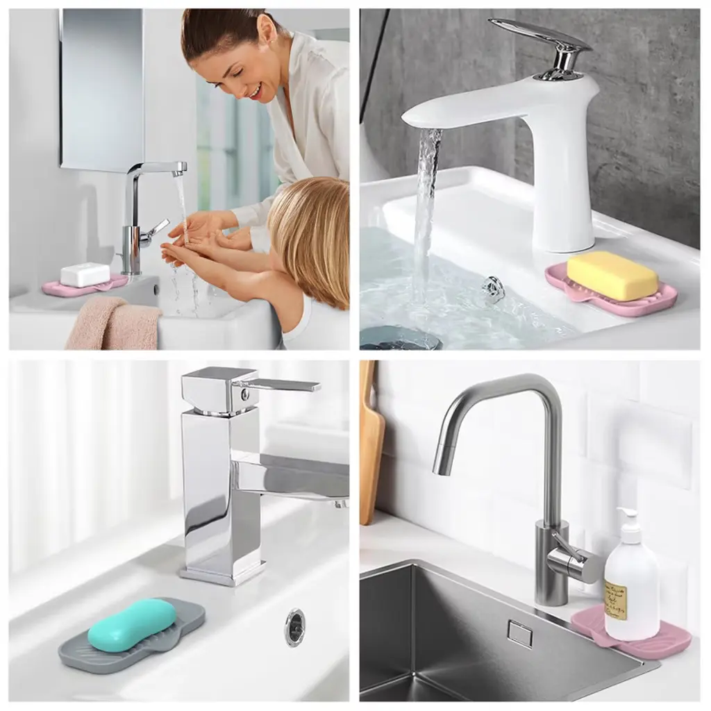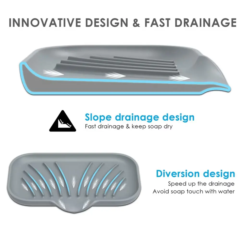 Aoibox 2-pack Silicone Soap Dish With Drain, Kitchen Sink Soap Holder, Dish Soap Tray For Dispenser, Sponge Holder, Durable And Non-slip