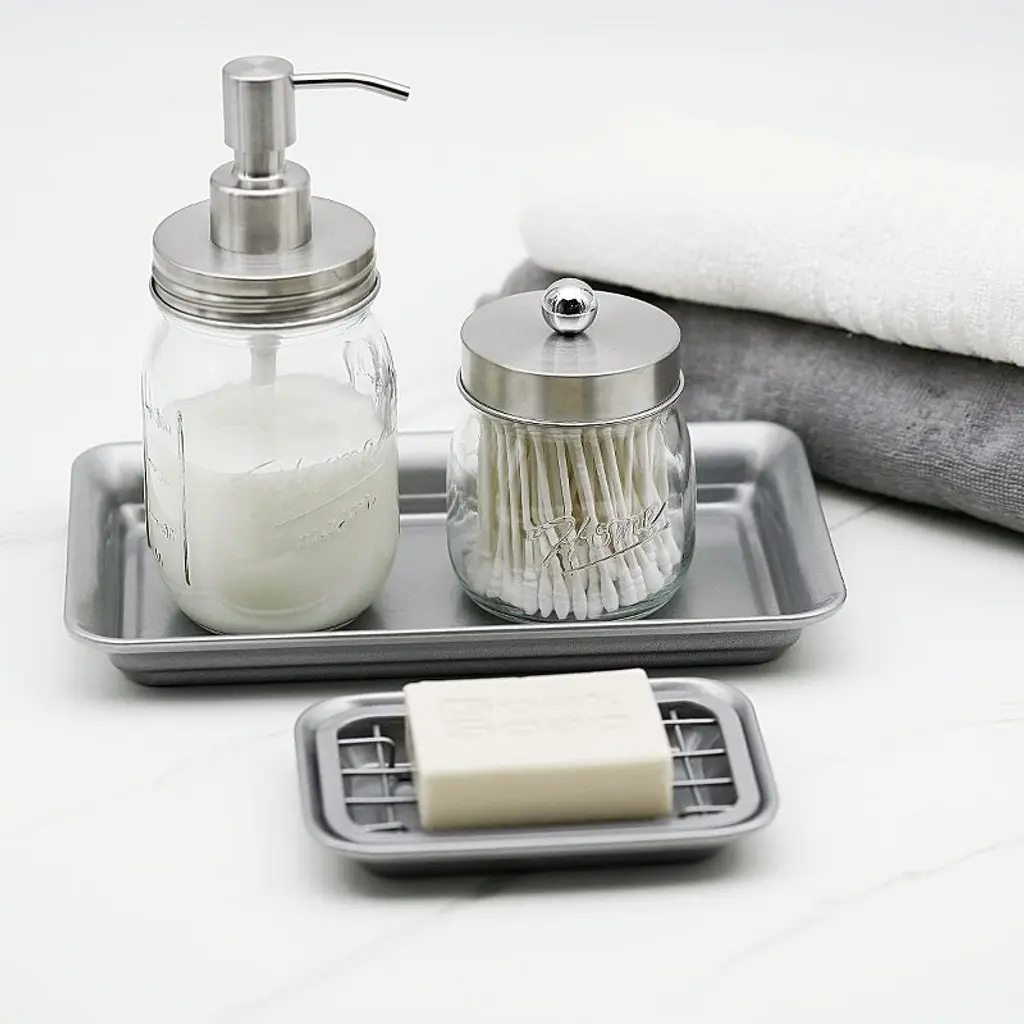 Looking for a practical and stylish soap dish? Our 2 - piece metal soap dish tray is the perfect choice. Crafted from steel metal, it's durable and rust - resistant, promising long - term use. The set includes a drainage grid and holder, which can be used to store soap, sponges, scrubbers, and more. The slotted design allows soap to drain and dry naturally, while the container underneath catches water to keep your sink surface dry. Its classic silver color can match various bathroom decors, whether it's sleek, classic, or modern farmhouse style. Place it on your bathroom vanity countertop or kitchen sink for easy access to soap. Ideal for homes, college dorms, apartments, and even RVs, it brings convenience to your daily life.