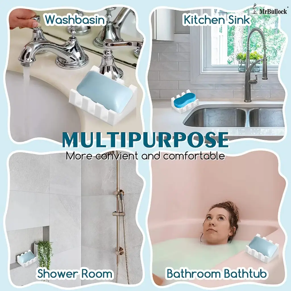 Aoibox Silicone Soap Dish For Bar Soap Holder, Self Draining Waterfall Drying Tray For Shower Bathroom, Keeps Soap Dry & Clean, Easy Cleaning