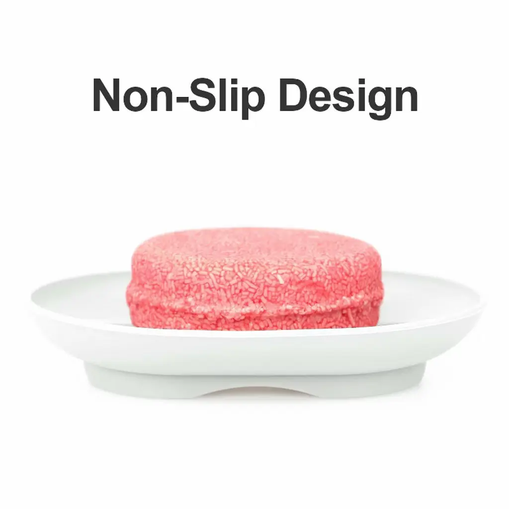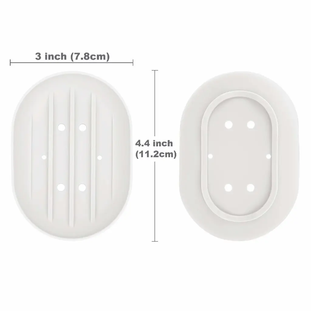 Aoibox Silicone Soap Dish With Drain Holes, Oval Bathroom Soap Holder For Shower Kitchen Countertop, Flexible Non-slip Soap Tray Keeps Bars Dry, White