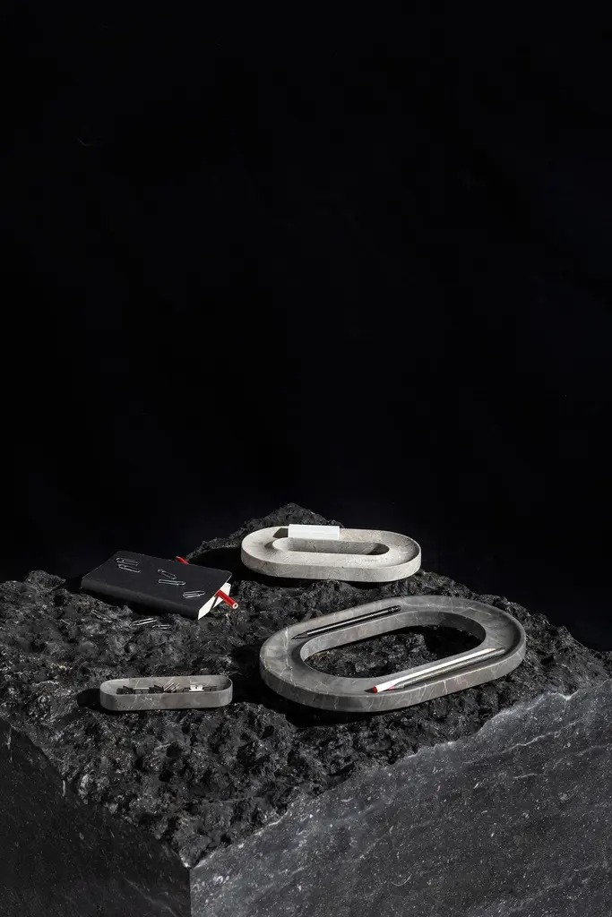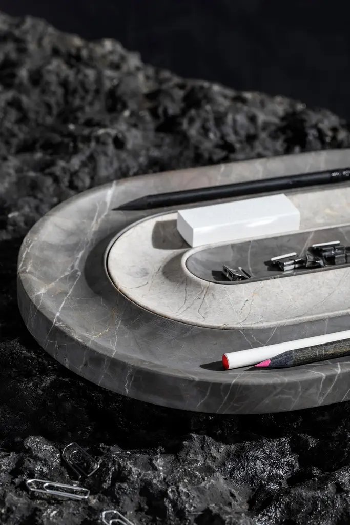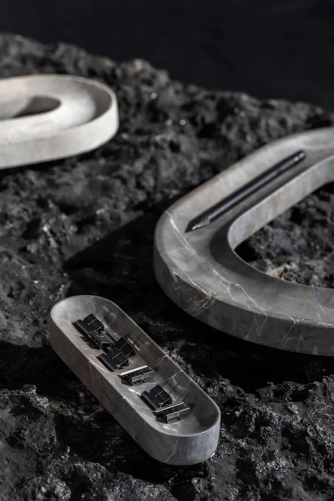 Dune was born from the dialogue between solids and voids, through the art of ‘subtraction.’ Its sinuous shapes and smooth surfaces evoke geological stratifications over time. The contrast between the nero marquina marble and calacatta symbolizes the harmonious balance between opposites. Dune lends itself to multiple compositions: when stacked, it has the dimensions of a classic fruit bowl, and when placed side by side, it is ideal for pairing cheeses with jams and dried fruits.Materials: Nero Marquina, Calacatta
