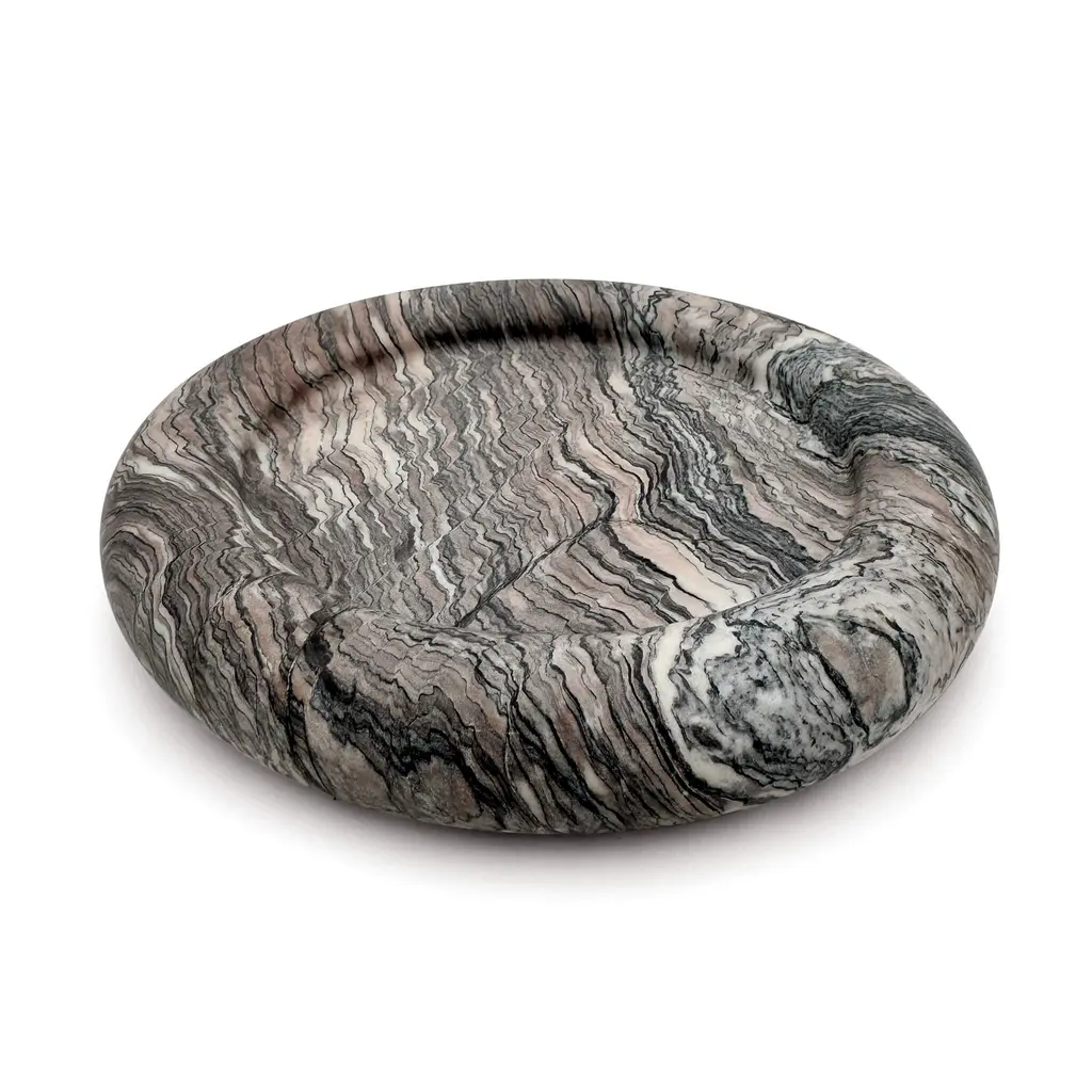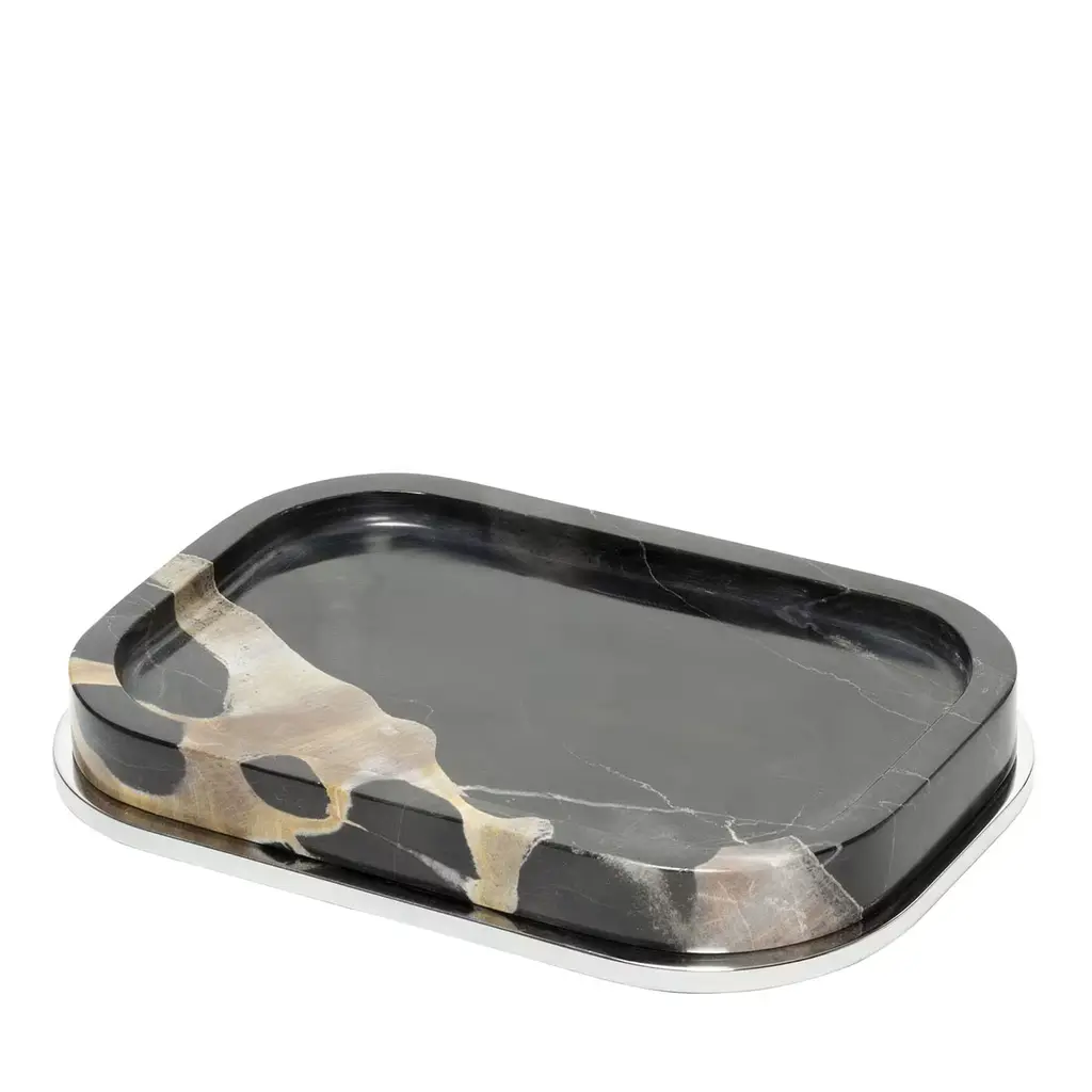 Discover this square tray with rounded corners, a sublime solution for serving drinks or welcoming permanently displayed collectibles. Obtained by meticulously sculpting a single slab, it is also available in Grigio Orobico, Rosso Lepanto, Black Marquinia, and Calacatta marble variants. Please contact the Concierge for options.