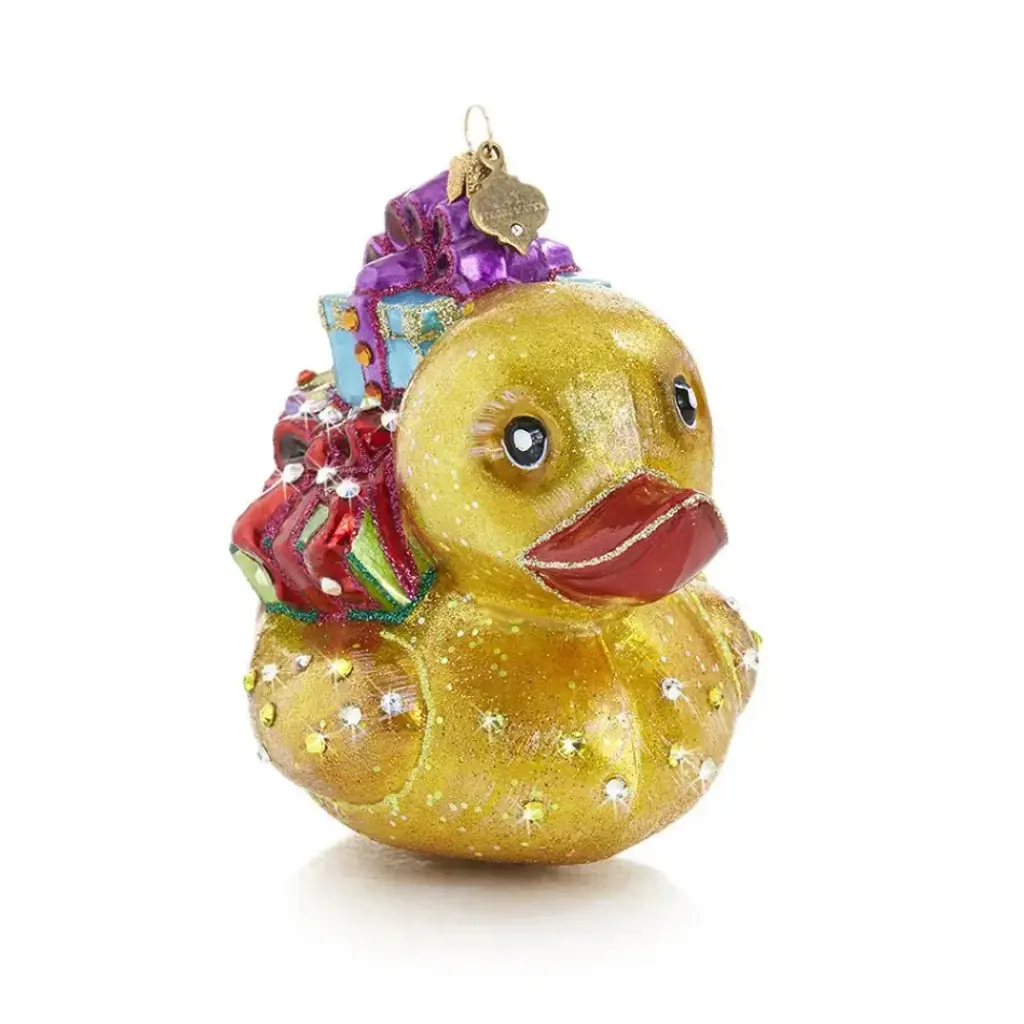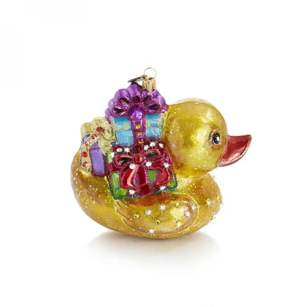 Rubber ducky, you are the one to bring Christmas presents and cheer! Mouth-blown by old-world glass artisans in Poland.