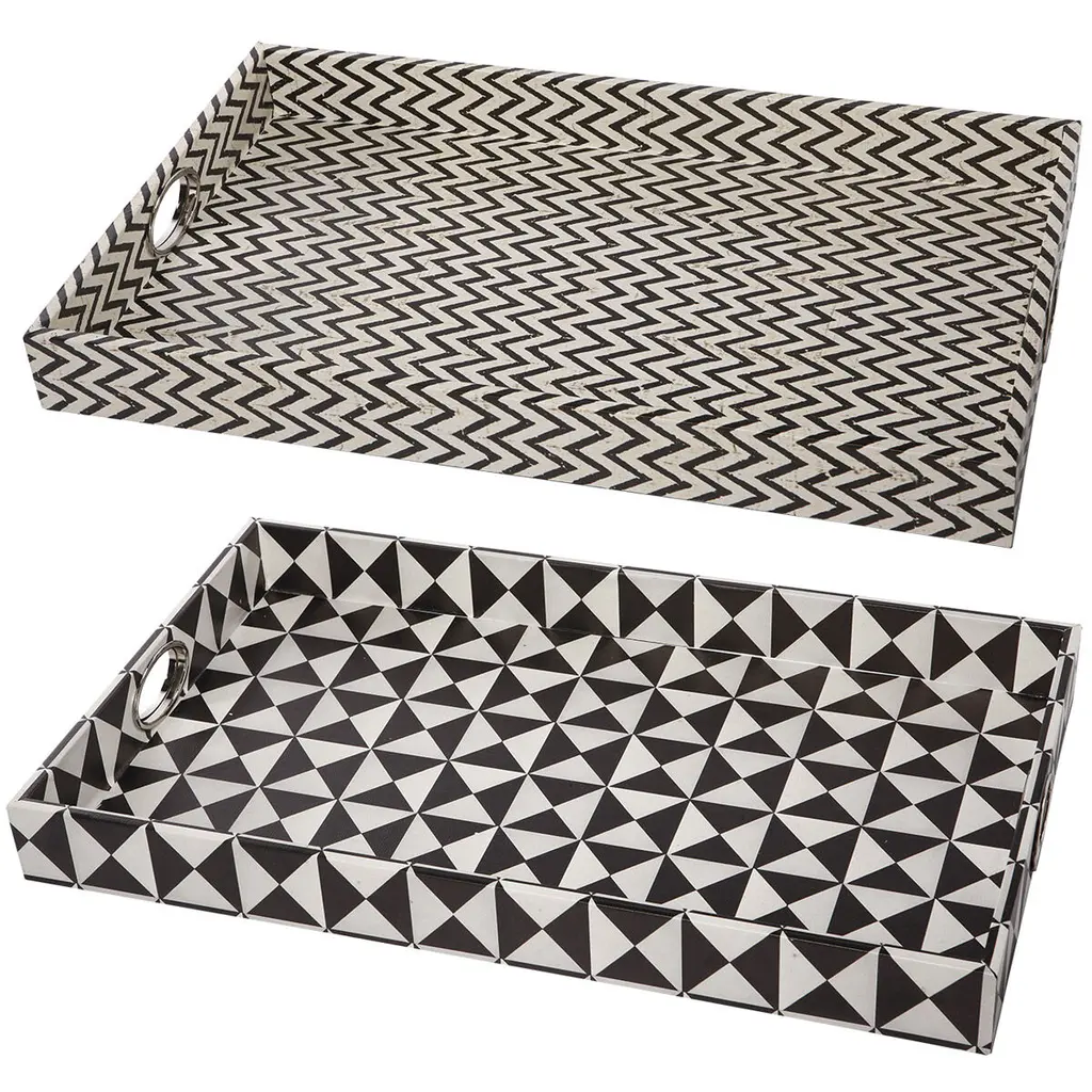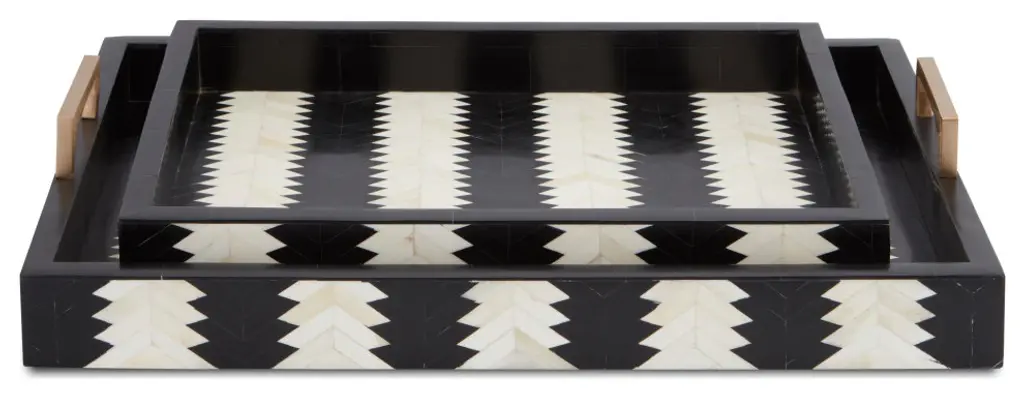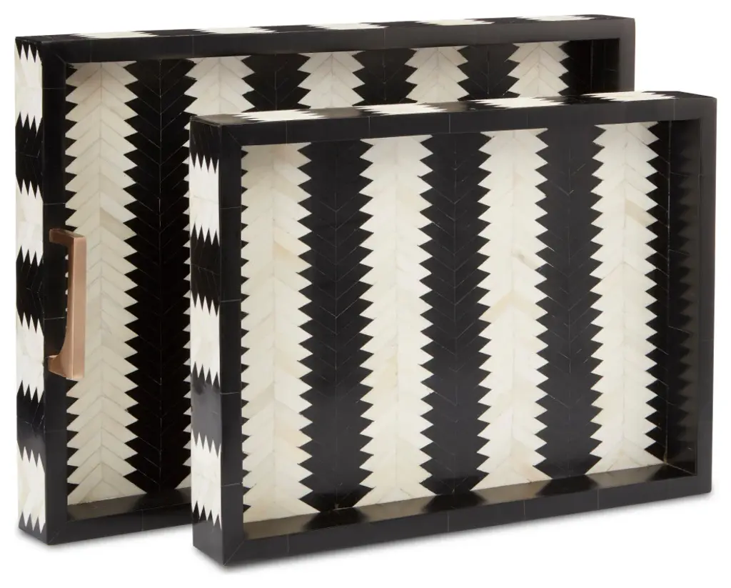 The Arrow Box Set, designed by Jamie Beckwith, is based on a strong graphic shape that comes alive with the contrast of bone and composite in ivory and black along the surface. Originally created in bold patterns for vertical and horizontal surfaces, Beckwith says of the Arrow, This is a unique take on a chevron pattern. I was inspired by original French chevron parquets and this pattern is an updated version of that. There is a classic feel to this graphic shape with a modern take. It provides a strong underlying structure that bonds all the elements of a room together. There are a number of offerings in this family of products.
