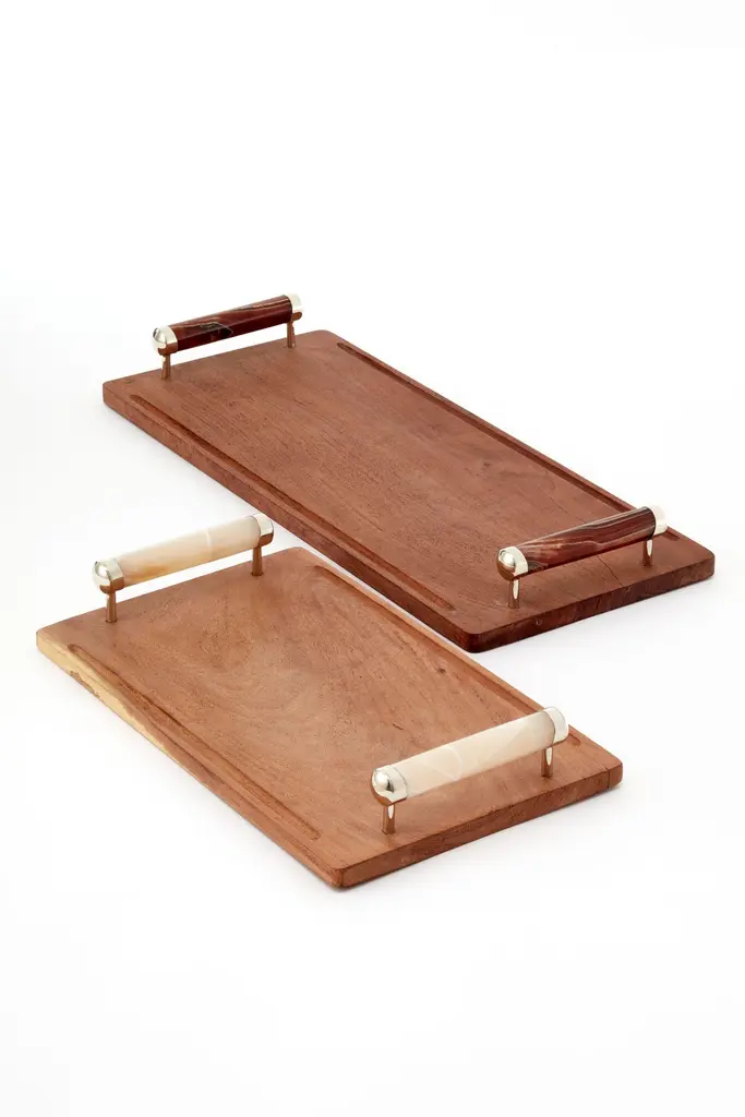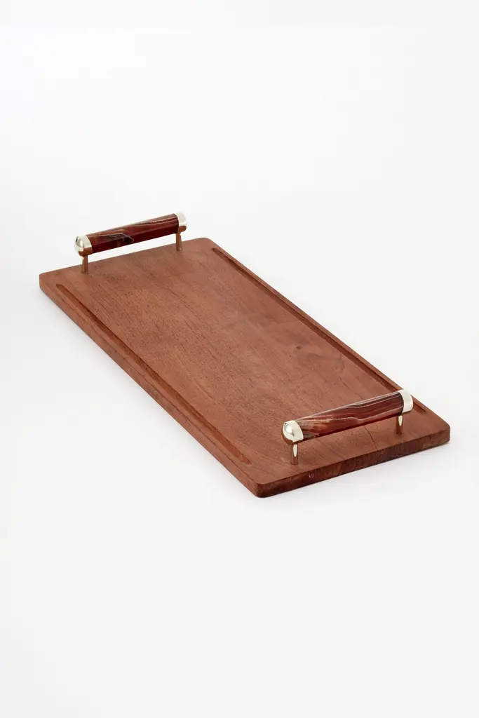 Asado Large Rectangular Tray, Cream Onyx, Carob Wood & Silver Alpaca