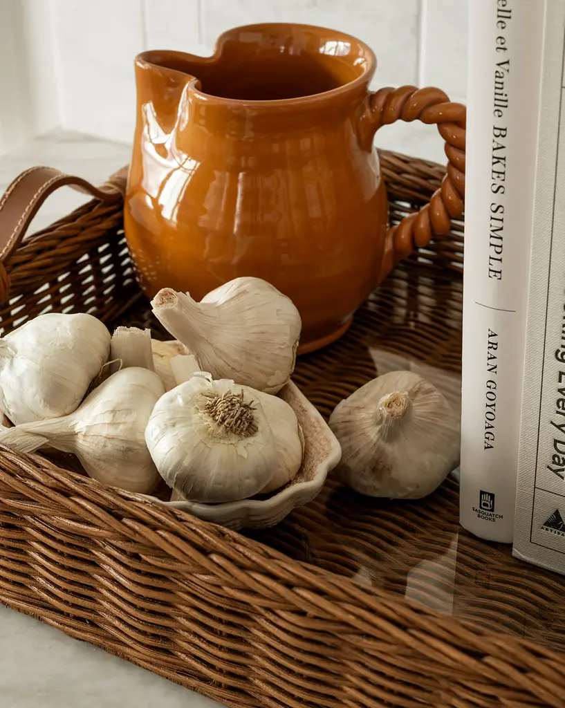 A spacious and sturdy tray, the Ashcroft Wicker Tray is both functional and beautiful. The woven wicker construction lends a casual and organic detail to any corner of your home, while the glass surface allows for seamless use.