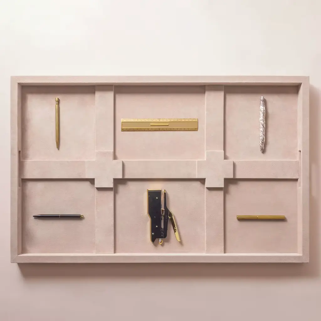 Assoluto is collection born from the orthogonal intersection of rigorously geometrical volumes. As a homage to the work of Carlo Scarpa, the massive forms and sharp edges create pleasing constrasts with the soft, natural charm of leather, and an eye-catching interplay of light and shadow, while the strong, clean lines provide each creation with a bold and unique visual aesthetics.