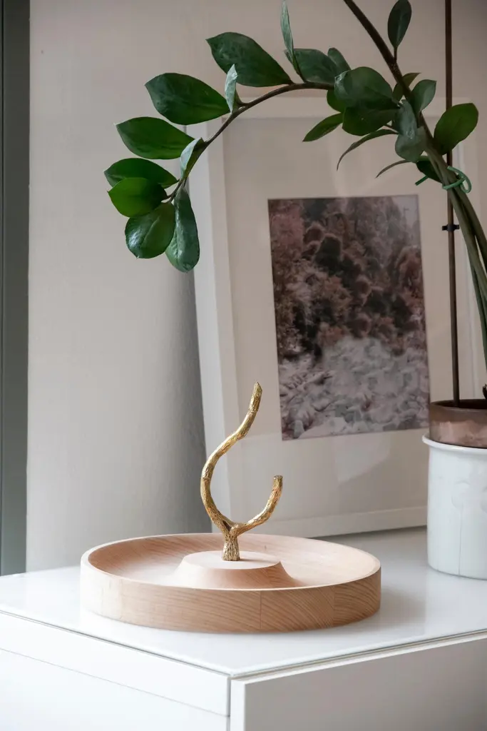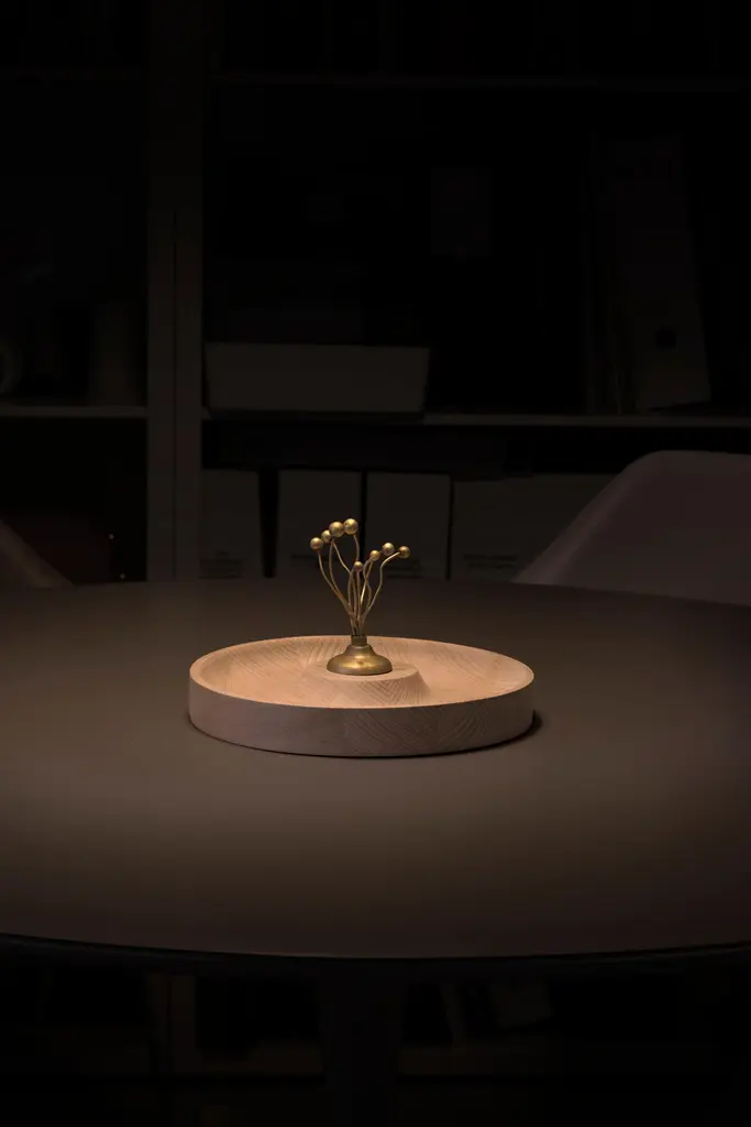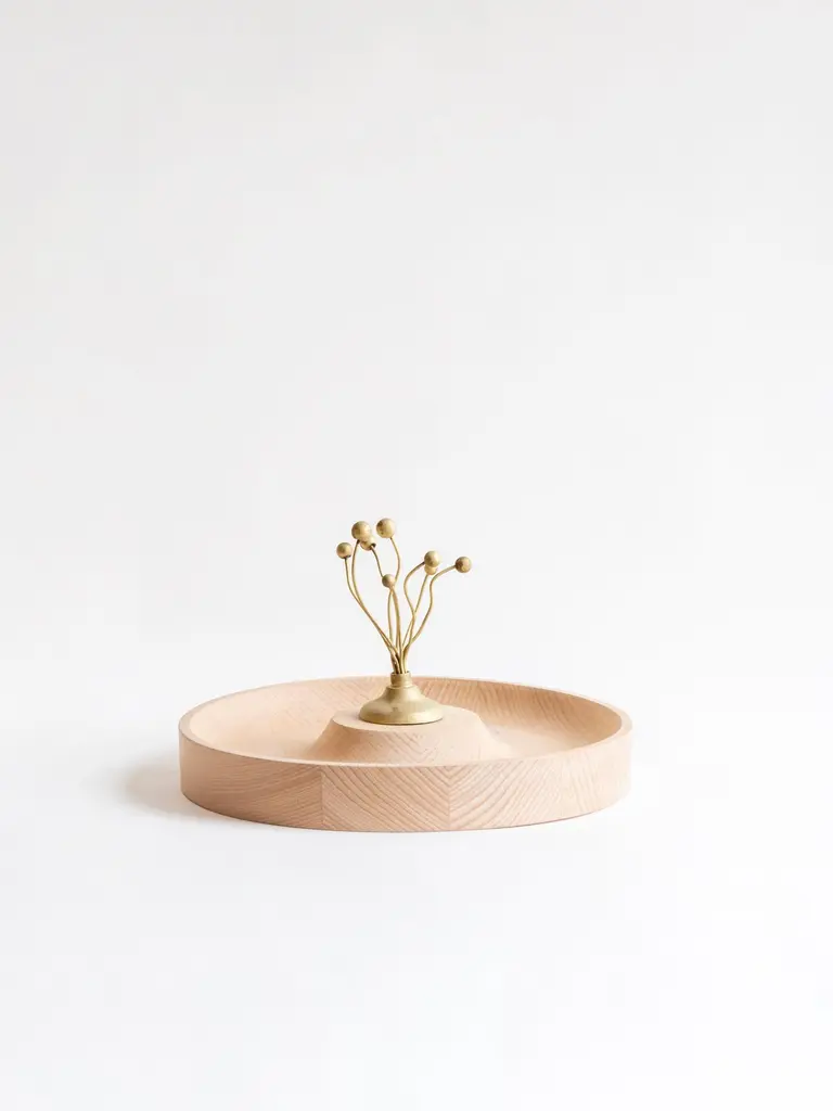 Aster T-Trays by ZPS StudioDimensions: D 2.5 x H 1.8 cmMaterials: Wood, brass.Hand lathe turned centerpieces in beech wood, with an elegant natural finish that contrasts beautifully with the central cast bronze handle, skillfully crafted by a Florentine artisan. Their versatility allows them to serve as refined trays or elegant fruit bowls, adding a touch of class and functionality to any setting.ABOUTZPSTUDIO is an architecture and design firm that emphasizes multidisciplinarity and innovation in every project. Established in Florence in 2003 by Eva Parigi and Matteo Zetti, the practice is focused on pursuing the perfect balance between tradition and avant-garde. Taking advantage of a year-lasting experience, spanning between different areas (retail, interior and product design) the work of ZPSTUDIO has earned its reputation by delivering the most accurate consultancy to its customers, providing them with an extensive and integrated vision of their needs. Attention to detail in every project is paramount to the company’s success in a broad range of works. The company’s services include interior design, architecture, product design, custom furniture and lighting, project development. Over time ZPSTUDIO works have been awarded in international design competitions, and they are being featured in leading specialized press.