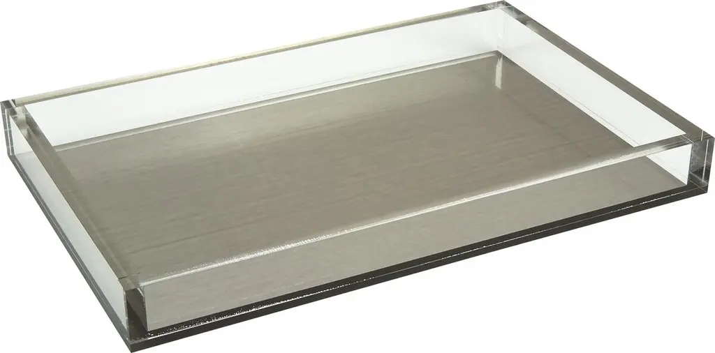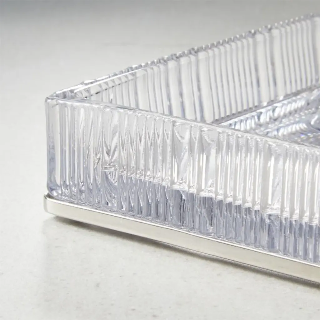 Ribbed glass goes all the way around these modern bath accessories, topped in polished nickel for an elevated mix. CB2 exclusive.