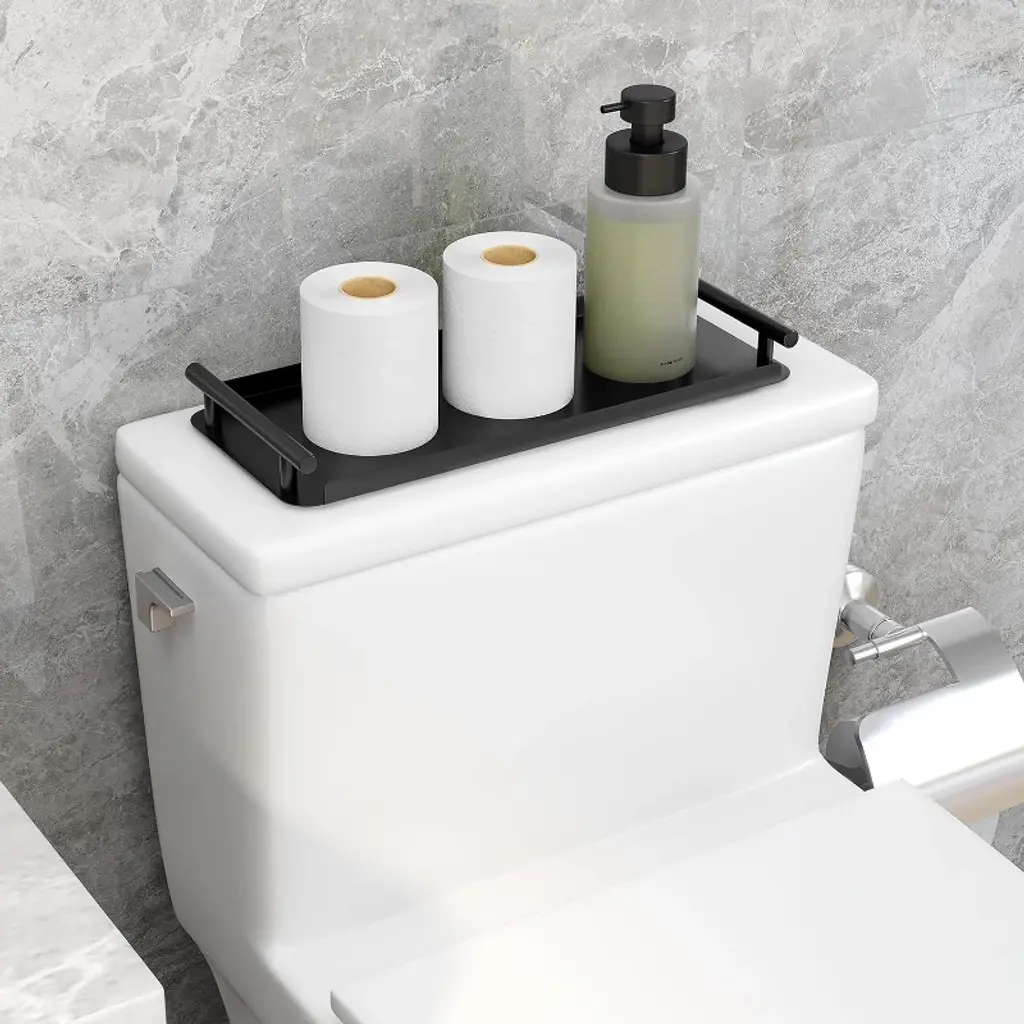 Attop Toilet Paper Basket, Stainless Steel Toilet Tank Tray With Handle For Organizing - Toilet Paper Basket Storage (Black)