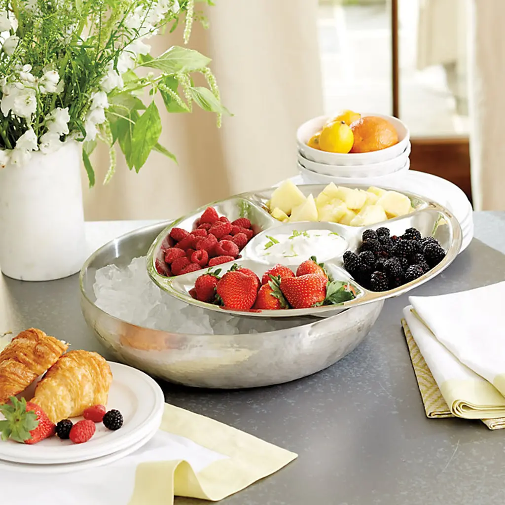 Cool it down and dress it up for outdoor entertaining with our Double Walled Hors d'Oeuvres Tray. Double walls of stainless steel retain their chill without sweating on your tabletop or serving area. Base stores ice to keep veggies and dips cold, and when you're not entertaining, top lifts off so you can use the bowl for serving or display. Avalon Double Walled Hors d'Oeuvres Tray features: