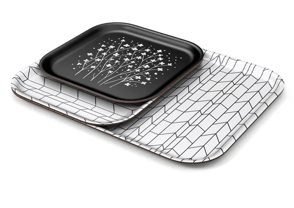 Baby's Breath is a square laminate tray, part of the Classic Tray collection.The designers Alexander Girard and Charles and Ray Eames were leading figures in American design during the post-war era. While textile design was the primary focus of Girard's oeuvre, he was also admired for his work in the graphic arts as well as furniture, exhibition and interior design.The expansive oeuvre of Charles and Ray Eames not only encompasses product design, architecture, exhibition design and cinematography, but also includes a large number of graphic designs, most of which were created by Ray Eames.The Classic Trays, which are made of laminated plywood, come in assorted motifs created by Alexander Girard for various purposes and selected by Vitra in cooperation with the Girard family. The Dot Pattern was designed by Charles and Ray Eames in 1947 and later used on pillows, cushions, blankets and other objects. Temporarily available is the Sea Things pattern designed by Ray Eames in 1945.Material: laminated plywood (oak, Romania), food-safe, not dishwasher-safe.