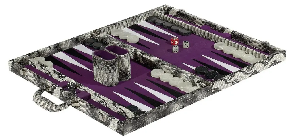 Backgammon Tray In Shagreen, Shell And Bronze Patina Brass By Kifu, Paris