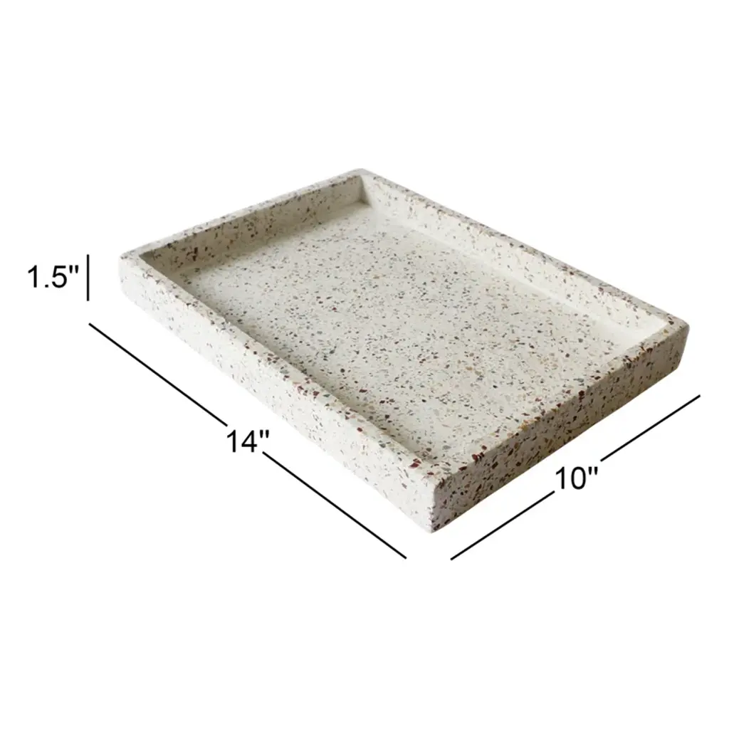 Effortlessly uncluttered. Decorative and functional, this terrazzo tray holds the remote – or candle, cactus, and hot sauce – while accessorizing your coffee table. Brightly colored flecks layer in a playful element and soften its clean geometric lines.