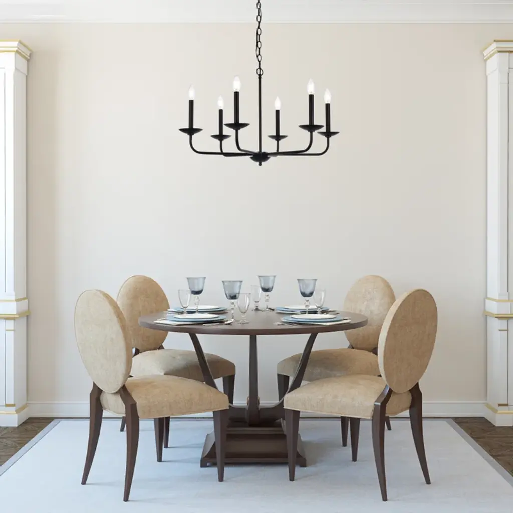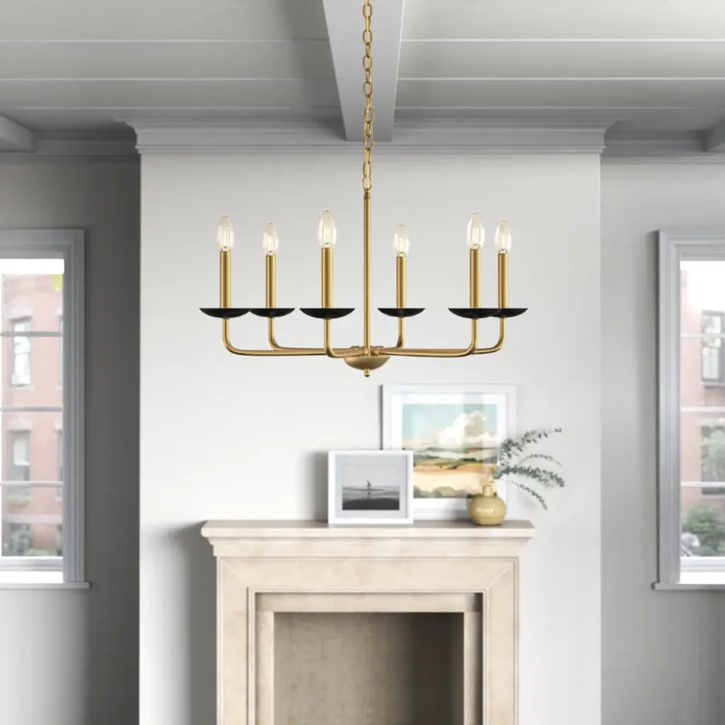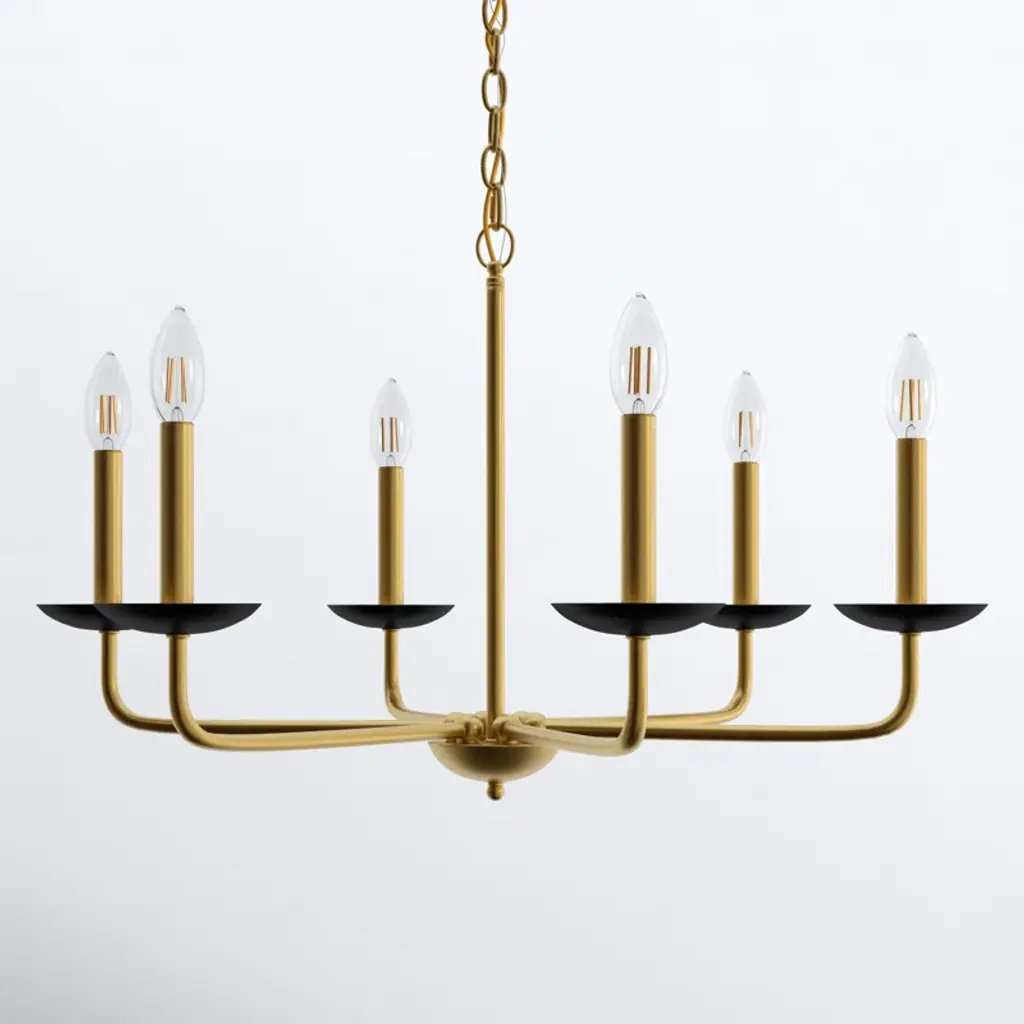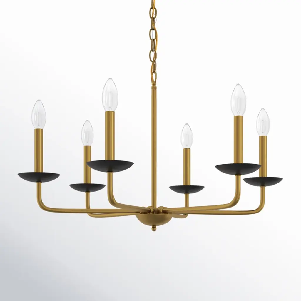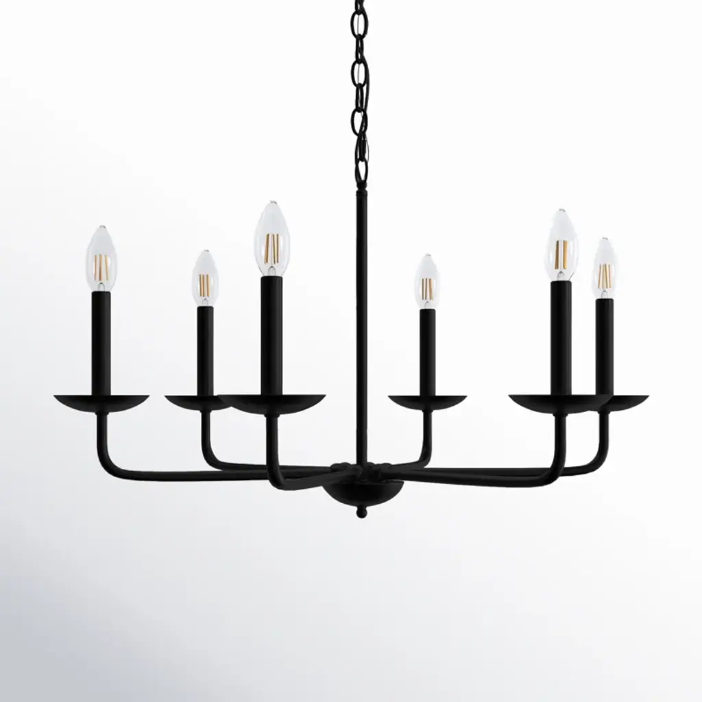 Simple dynamism defines this classic chandelier. Each of the six arms supports corresponding candlestick-style holders for distinctive look. Just add your preferred bulb (sold separately) for a bold, inviting dimmable glow. A downrod with an adjustable chain and a canopy that's compatible with sloped ceilings make for easy customization in any space.